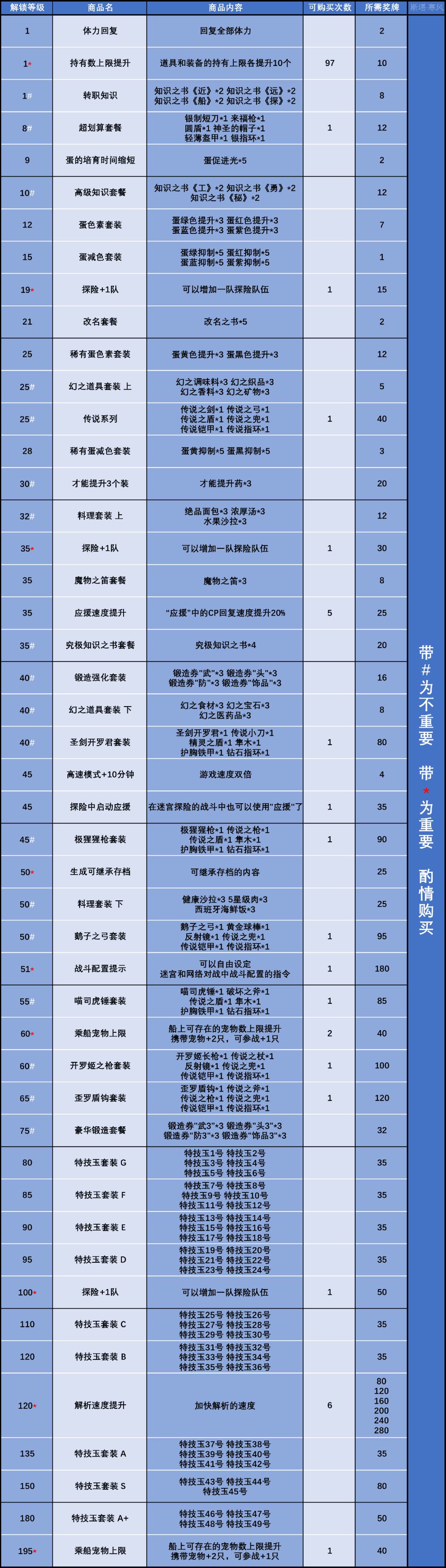 船团等级对应商店物品表#攻略