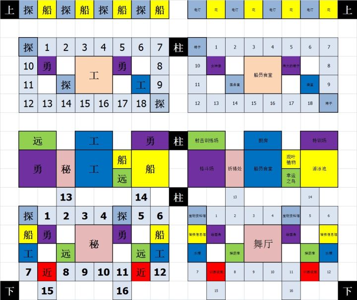 开罗游戏一向让我着迷的就是建筑布局,大航海也不例外,基本除了孵宠物就是大把时间放在研究这上面……不bb,先上效果图借鉴了的一些想法,有再深入挖掘下面是详解首先是关于覆盖范围的解释然后是个人布局思路里的模块单元基本就是这样,有什么改进意见欢迎探讨7.29更新关于工具人培育,布局做了一些改进由于最容易捕获的工具人是水手和商人(挂商业岛就好)因此布局向他们靠拢8.4更新,修改了覆盖