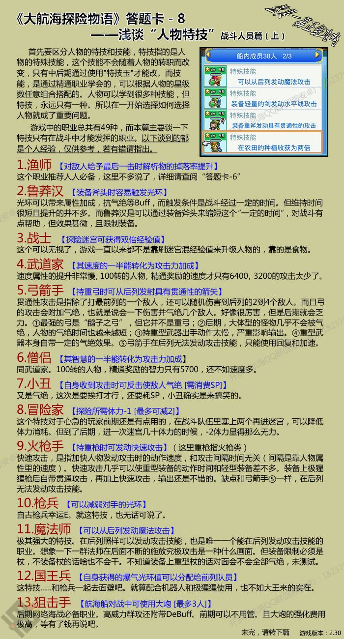 2.26更正武士装备问题,感谢论坛网友Caine Farseer指出2.18感谢钟一大佬,在制作答题卡过程中帮助指出相扑技能的错误。本篇只是本人一路玩下来的感受,并不一定完全正确合理。 仅供参考