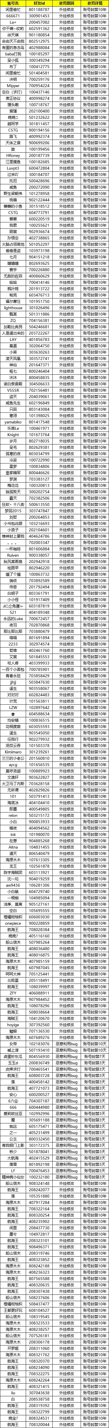 游戏环境净化公告(处罚名单持续更新)