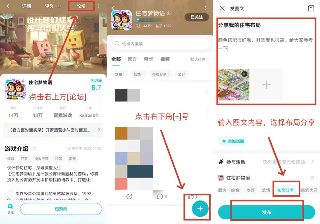 听说有的小伙伴已经成功开发了好几种不同的房间,还把公寓布置得舒服且豪华?! 住在公寓里的居民们应该生活得超级愉快吧~ 快用图片分享你的独家住宅布局吧! 即日起至6月9日,在论坛子版块【布局分享】晒出你最满意的住宅布局,即可参与活动,赢取奖励! 〓活动时间〓 2023年5月31日-2023年6月9日 〓参与方式〓 在《住宅梦物语》论坛【布局分享】对应板块下,发帖分享布局搭配截图,即视为参加活动; 〓