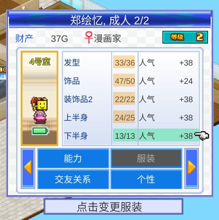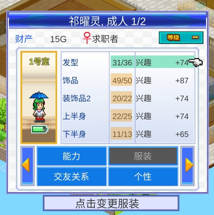 一开始求职失败,我重进存档几次还是失败,正在思考使用转职通,还是给他添哪些家具能把数值刷上来(兴趣聊天25发现职业顾问,但是不知道要不要刷到聊天25才能入职。头脑也不知道要刷多高。)正查着攻略,然后游戏卡退了,重新进就入职成功了。真好哇,看着自己的这几个小人顺顺利利发展,刷数值找工作恋爱生子,生怕哪个小人不顺利,到时候还不知道能不能补救。我还以为35%的成功率,不管重进几次都没办法求职成功,还