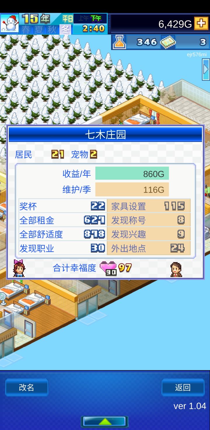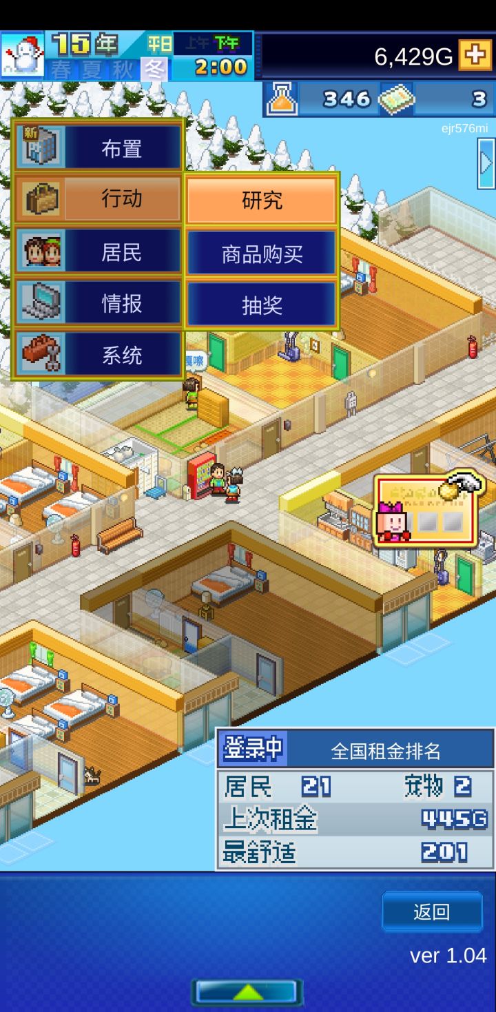 首先要理解这个游戏玩法主要就是建专用房间,建专用房间可以让房间的舒适度变高和租金变贵,然后招人进来住,帮他找个好工作,然后慢慢经营下去 然后推荐几个前期很有用的专业房间搭配因为适用的地板不同,前期给的房子版型并不合适,可以自己重新建地板。前期可以建的专业房间,注意地板婴儿房=地板垫+床+灯读书房=地板垫+书架+灯和风室=榻榻米+(圆桌+坐垫)(矮脚饭桌)纯和风=榻榻米+橱子+圆桌时