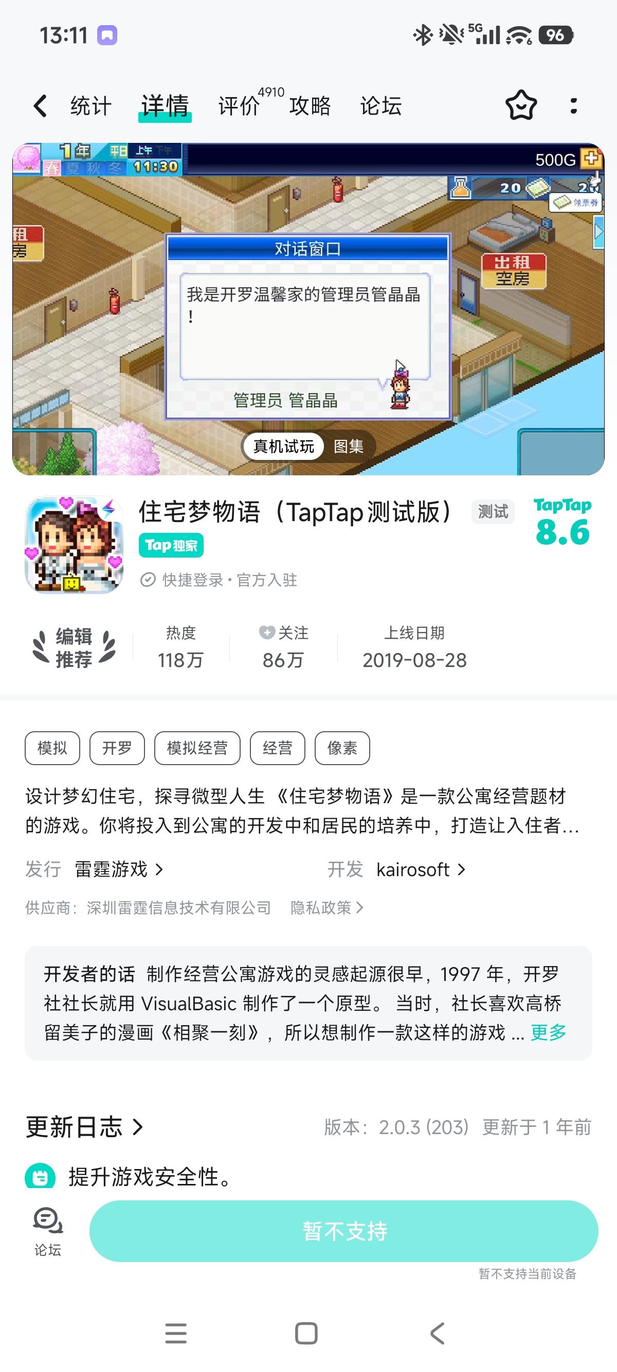 房租好像还是有扣的,但是没人啊没人!!研究点什么的都加不了了。只有新招的房间有人,过会就没了##住宅梦物语TapTap测试版