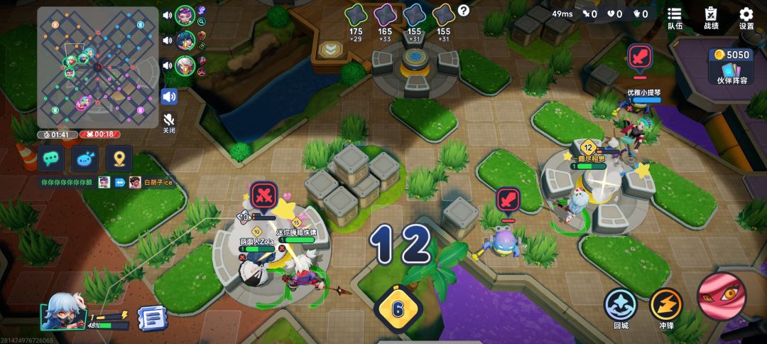 游戏的核心玩法在于4V4V4V4的16人多方混战。游戏的话,好玩爱玩,偏策略型。 先介绍一下游戏的基础规则,先满足开拓分到达4000分的队伍获胜。第一名和第二名均有加分,第三名不扣分,最后一名扣分。 正篇开始: 1.自走棋玩法: 在游戏的选角界面,可以选择初始的彩虹伙伴,不同的彩虹伙伴存在着克制关系,比如爆裂投手克制罗刹、夏莉克制虎克、朱雀克制单肉多后排阵容。有的彩虹伙伴适合打团,比如苍仞和
