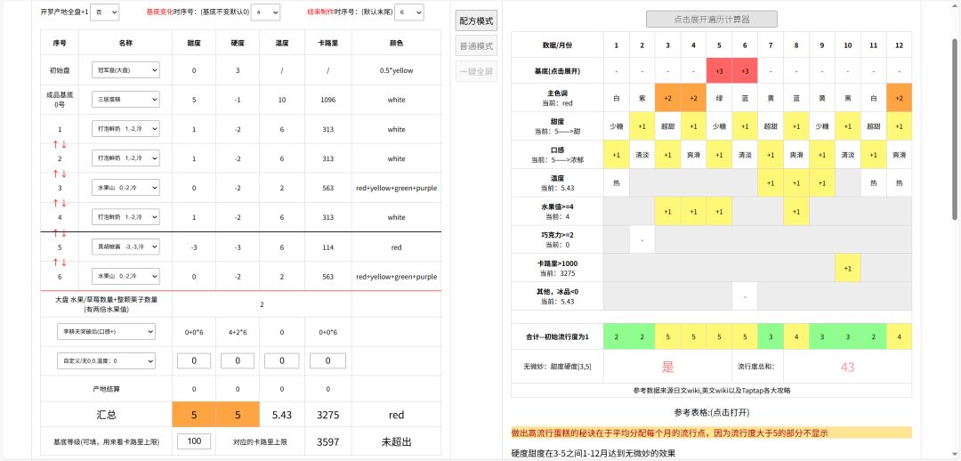 事情的起因还是从我做无微三层蛋糕说起,当时从论坛找的配方是 网络农场二级 漆器盘 稀有奶酪蛋糕+椰果+打泡鲜奶*3+枫糖浆 当时我做到最后一步,看着口感还是零(实际上是负数了),想着加个抹巧以便刷等级,加了之后还是零,觉得应该是稳了,没想到李耕夫直接给我干到了8。我一开始以为是运气好,爆种了。然后再试了一次还是一样的结果。于是开始研究起这小子的逻辑。 直接说结论吧: 只要你的配方里有正数的口感食
