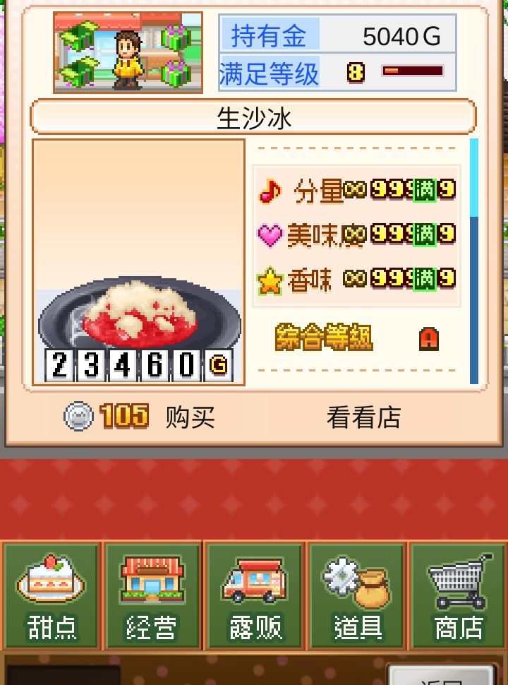 在点开“本店招牌-看看其他店”后好友才可以来店里买东西,和其他客人一样有满意度,升到30级会给蛮多奖章的,相当于多给你10个客人,所以好友功能很重要! 好友的喜好就是他的招牌甜品,最好不要摆数值高的微妙蛋糕!不然其他好友会很难提升你的满意度!(他的招牌数值高于你的蛋糕一定程度后,满意度提升会很少)像我的这个好友,摆了全加打泡奶的超甜清淡沙冰,我拼尽全力做甜点依旧无法满足,好不容易买一个还只加12