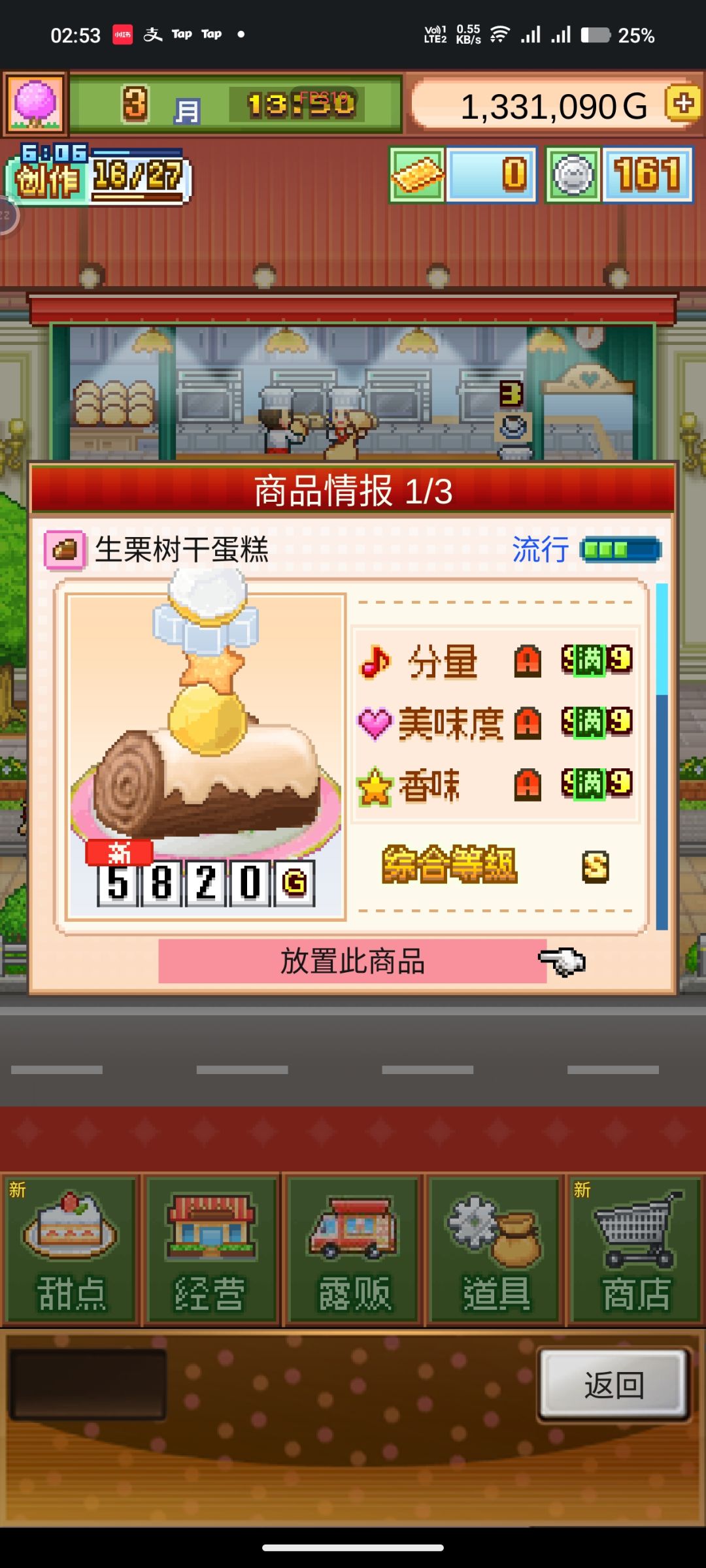 彩色盘子/和风盘子+果冻+打泡奶+樱桃+浓缩咖啡+杏仁 这个是我看了很多攻略找到的一个,很多大佬的新手攻略做出来都因为食材等级不够达不到数值弄不成无微妙,这个我做出来就是无微妙,这个配方做两遍,把货架搬到里出餐口旁边会更快一点,前期可以只买这一种蛋糕,这一个配方做两边就会变成两种蛋糕
