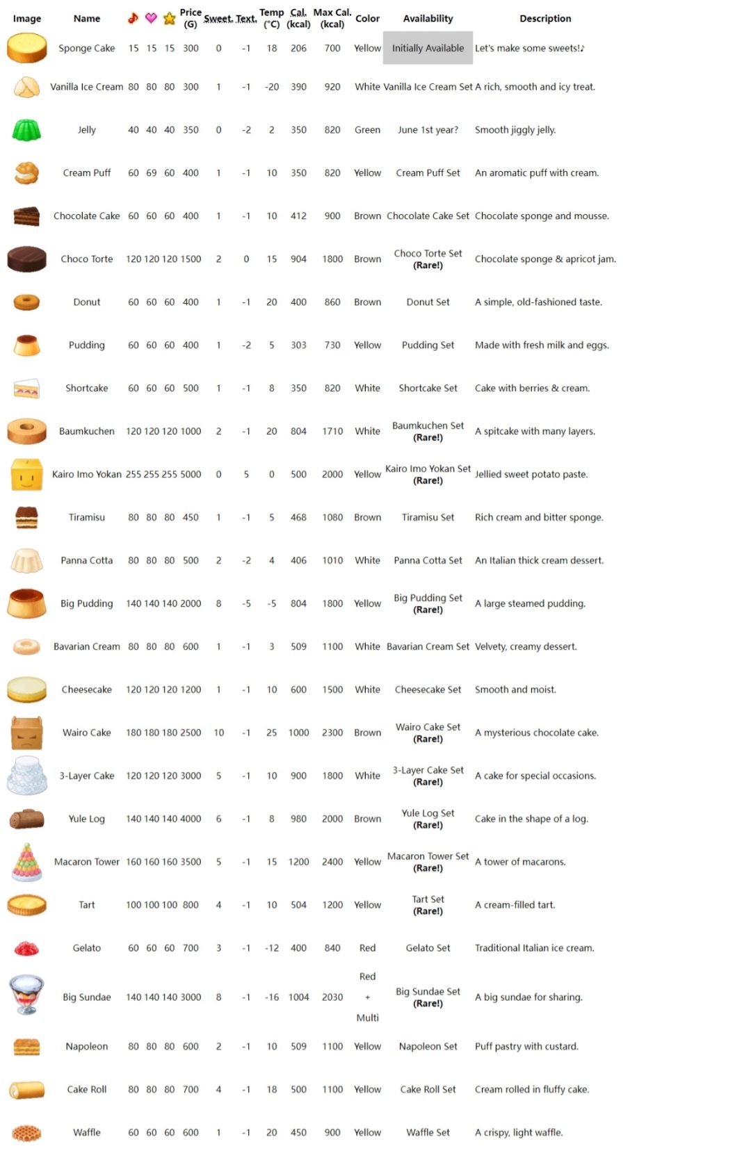 看到了 <https://www.taptap.cn/moment/588698257882875799> 这位大佬做的蛋糕编辑器,里面有部分食材和基底需要自己手动录入,一些攻略图片里没看见对食材颜色的定性,于是去外网wiki扒了一下英文攻略里对食材颜色的划分,供大家参考结合使用。(简单英文所以就不翻译了 图片里大家看color那一行就行,英文攻略里的brown应该就是black