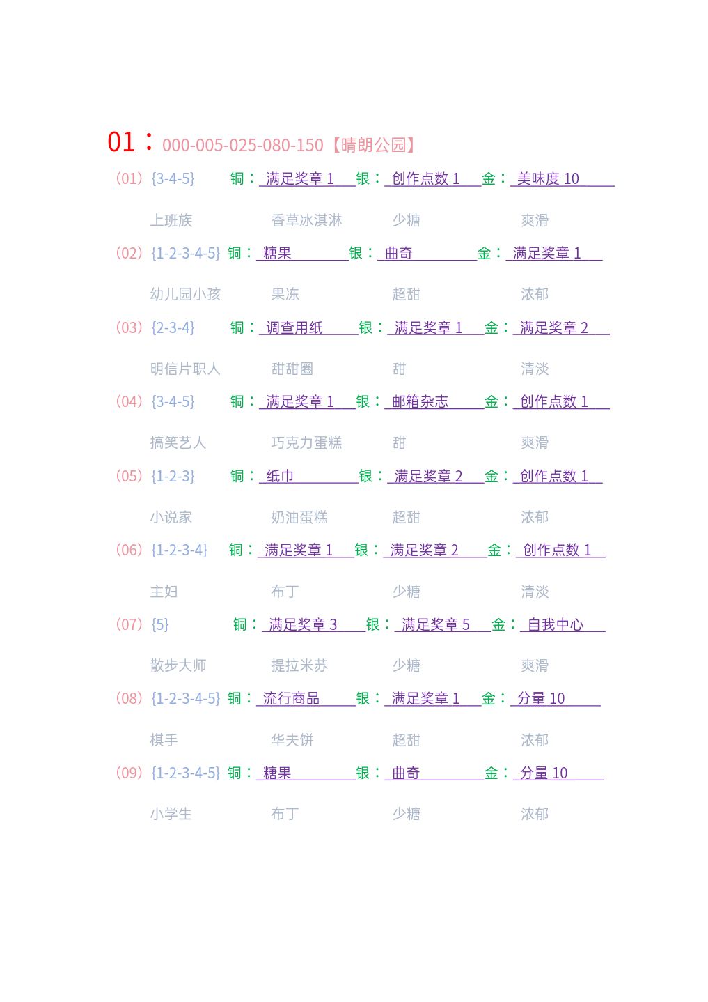 刚刚翻到的配方图表,也不知道全不全呐… 🍭🍭🍭🍭🍭🍭🍭🍭🍭🍰🍰🍰🍰🍰🍰🍰🍰🍰 分栏~~~~~这个是文字式的配方 总感觉这个更全一点(小声哔哔◉ɷ◉ ) 一、新品蛋糕🍰 1、长崎蛋糕:芝士蛋糕材料:砂糖系+砂糖系+奶油系+奶油系 2、牛角包:奶酪材料:奶油系+巧克力系 3、熔岩蛋糕:牛角包材料:巧克力系+巧克力系+奶油系 4、拿破仑千层:泡*芙 奶油系 砂糖系 5、树干蛋糕:瑞士卷+巧克力系+巧克力