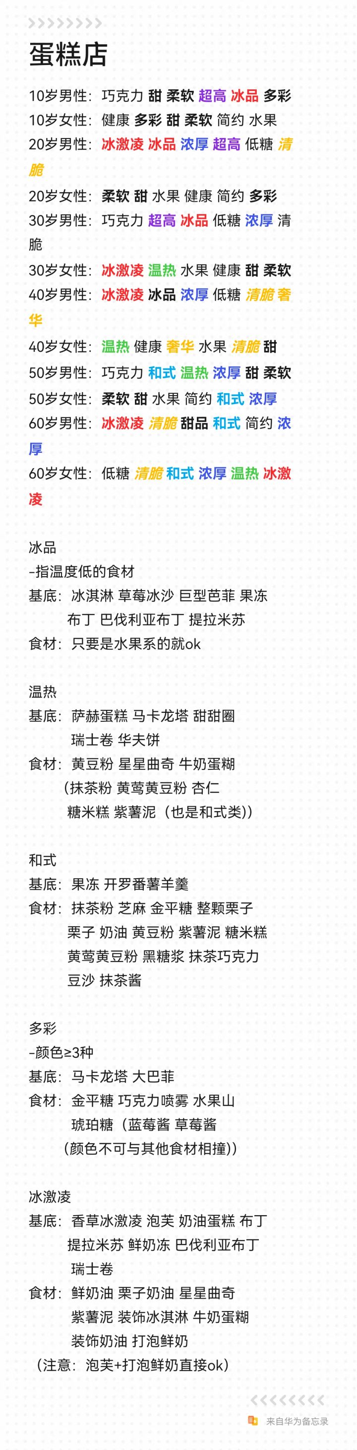 #创意蛋糕店攻略 #创意蛋糕店 将评论里的攻略以图片的形式重新整合了一遍,并附上了自己常用的参考表。
