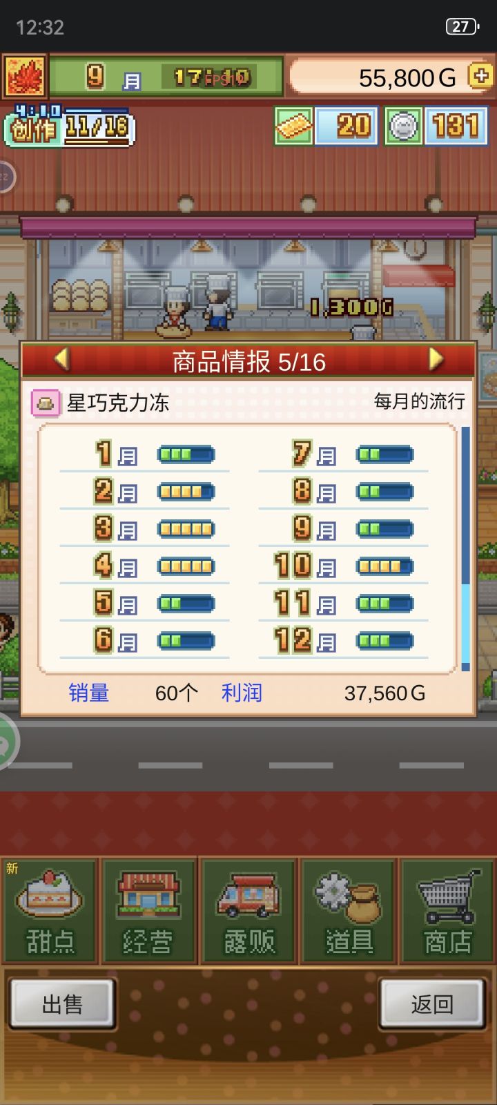 发现这个蛋糕卖的最快想换到最里面的货柜,换了之后发现利润锐减75%,读取以前的存档发现的,其他的蛋糕价格只是高了两三百而已
