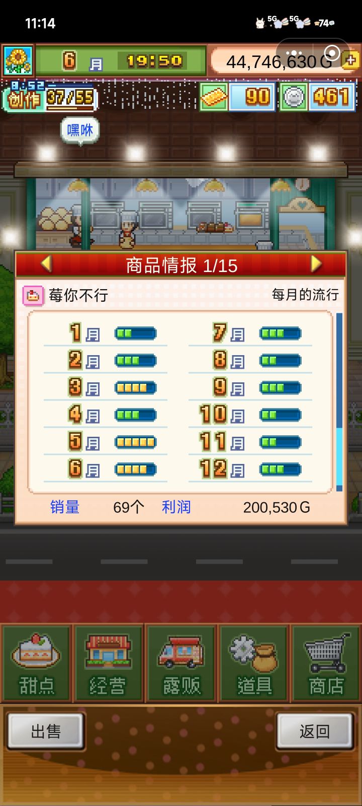 发现这个蛋糕卖的最快想换到最里面的货柜,换了之后发现利润锐减75%,读取以前的存档发现的,其他的蛋糕价格只是高了两三百而已
