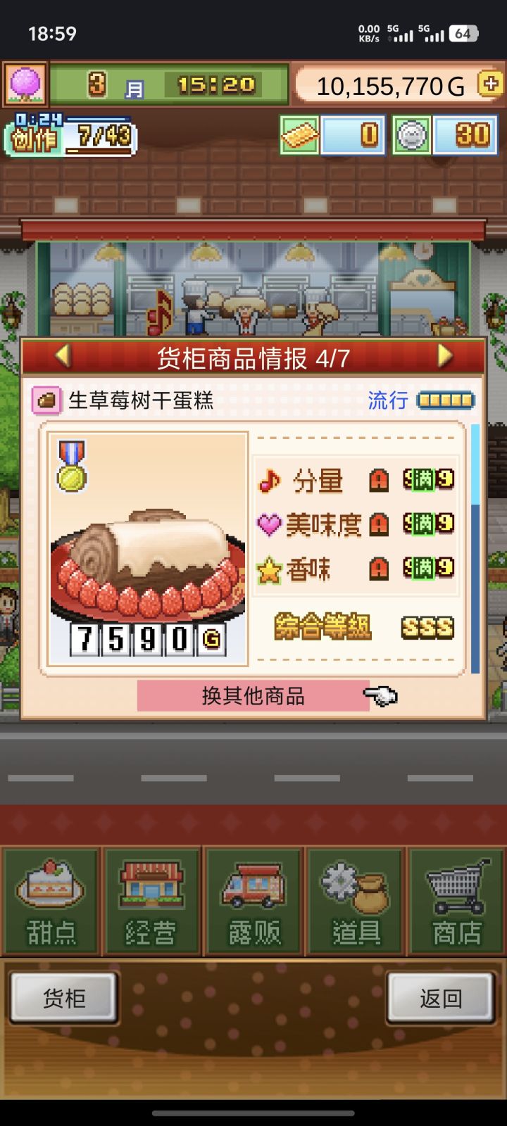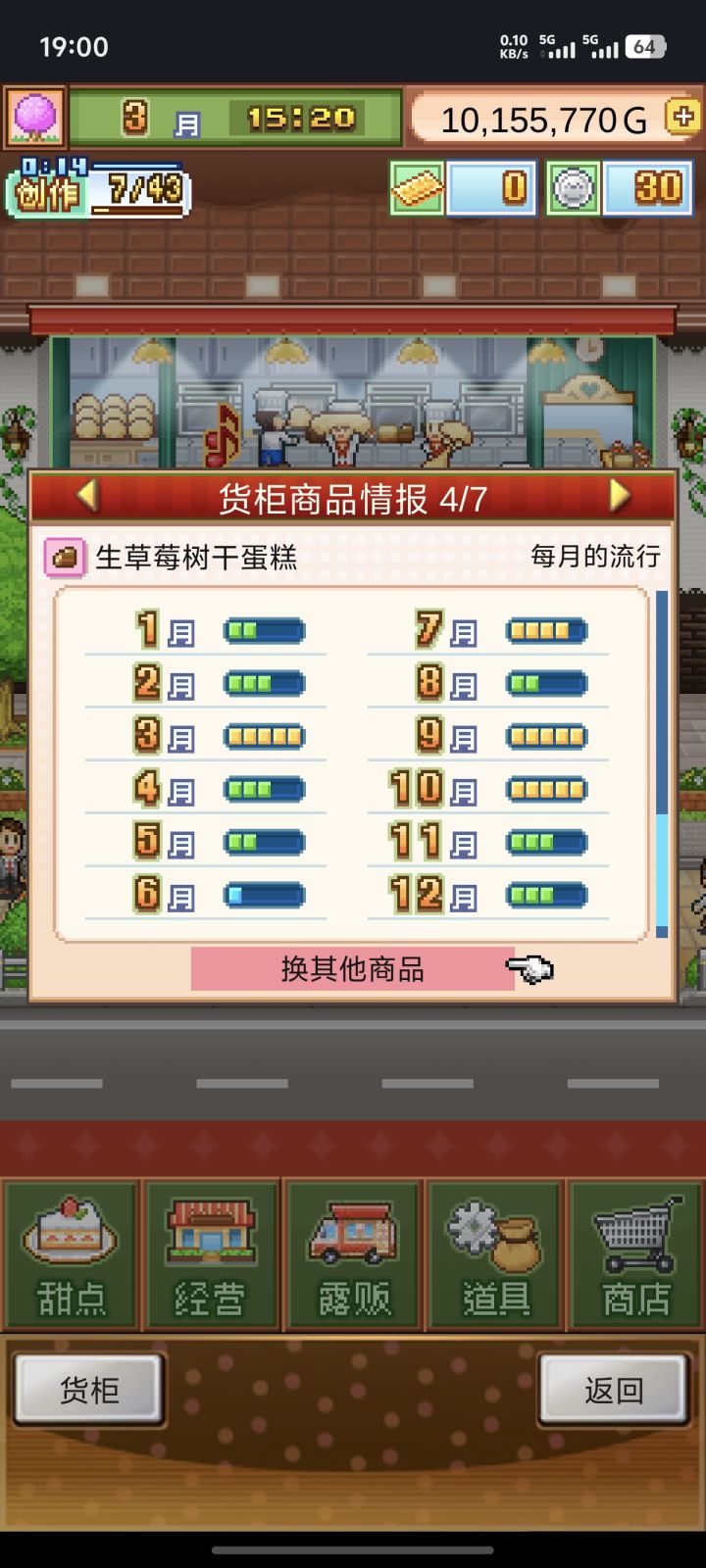 发现这个蛋糕卖的最快想换到最里面的货柜,换了之后发现利润锐减75%,读取以前的存档发现的,其他的蛋糕价格只是高了两三百而已