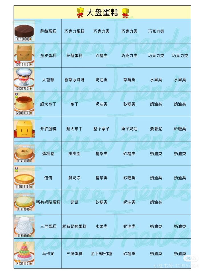 (因为是前期配方,所以尽可能会选最早出现的几种材料)——————————————————————p1-②四流无微(巴伐利亚):和风盘+果冻+打泡鲜奶+樱桃+草莓酱+白银糖衣丸结尾:李耕夫+口感tips:四种都差不多,三围看起来②最好——————————————————————p2-①四流无微(巧克力蛋糕):普通盘+海绵蛋糕+巧克力+白银糖衣丸+巧