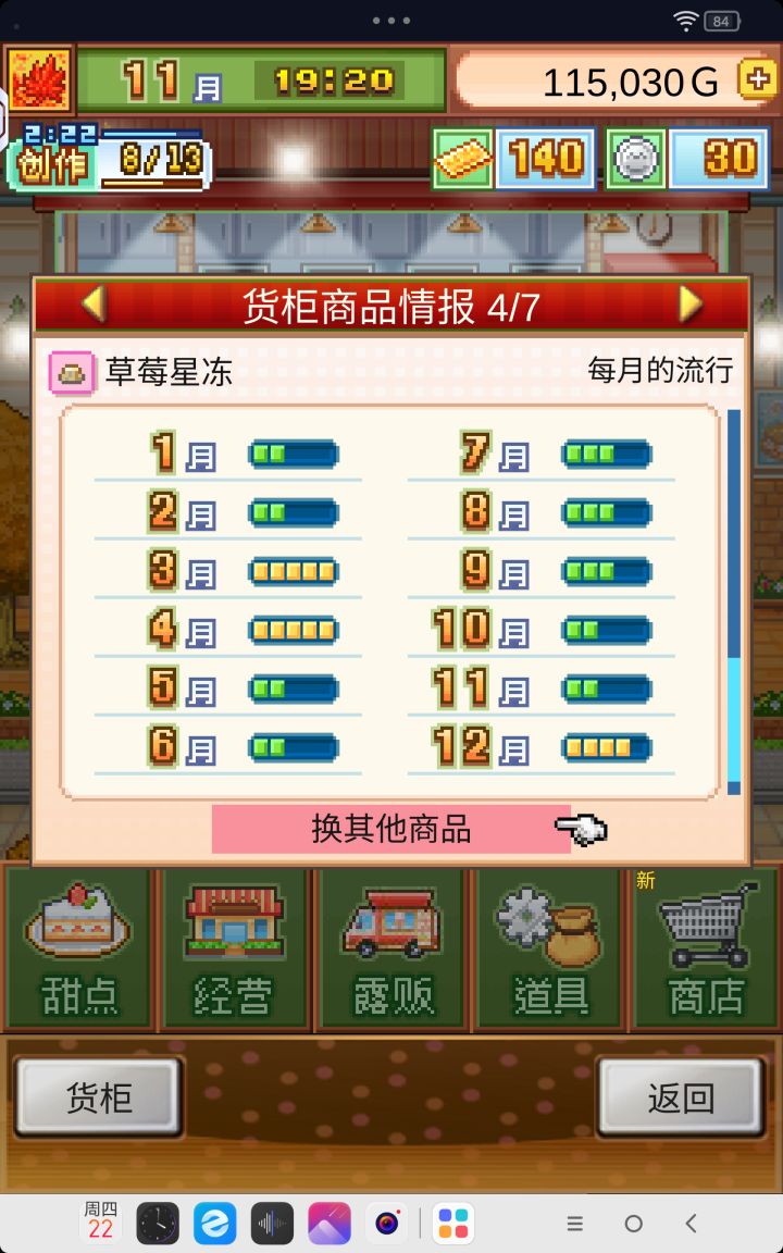 发现这个蛋糕卖的最快想换到最里面的货柜,换了之后发现利润锐减75%,读取以前的存档发现的,其他的蛋糕价格只是高了两三百而已