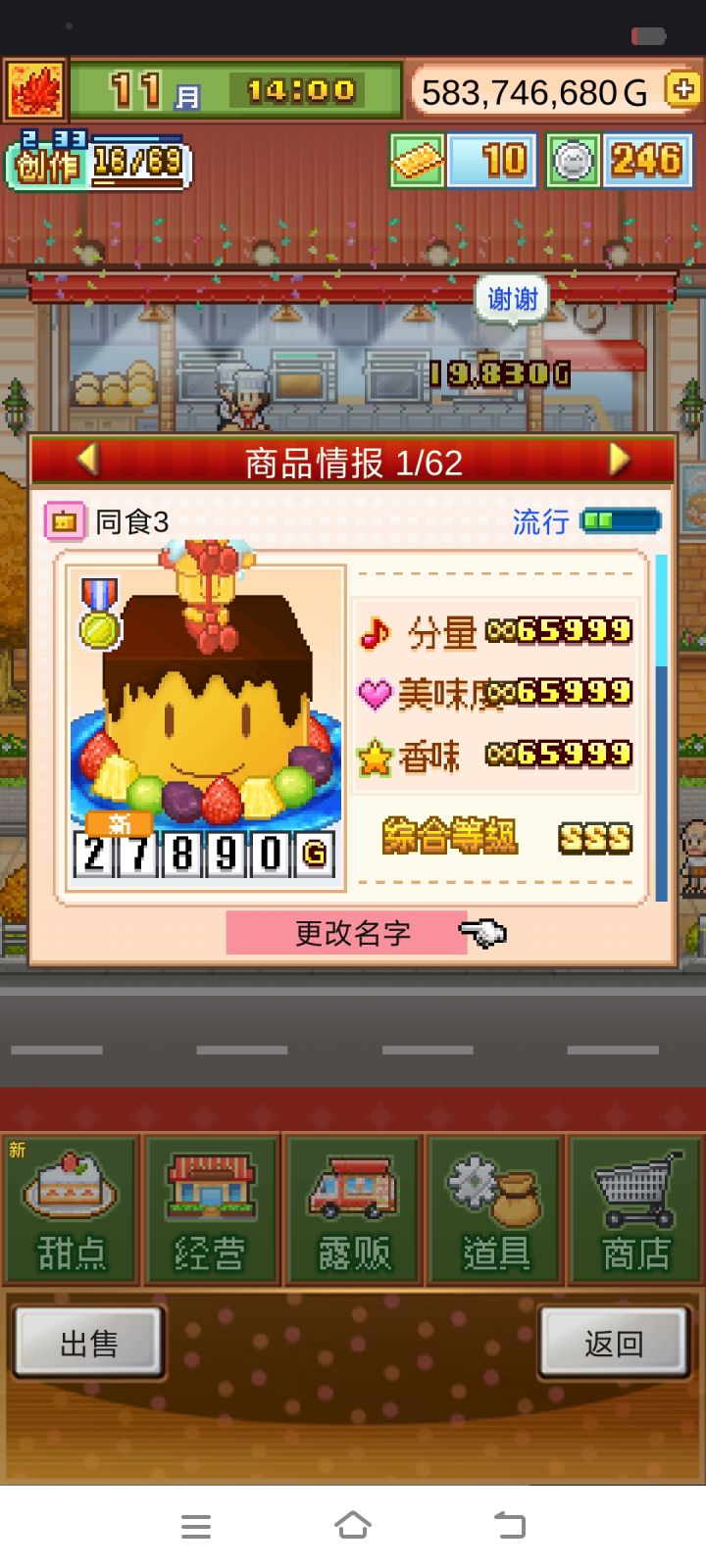 发现这个蛋糕卖的最快想换到最里面的货柜,换了之后发现利润锐减75%,读取以前的存档发现的,其他的蛋糕价格只是高了两三百而已