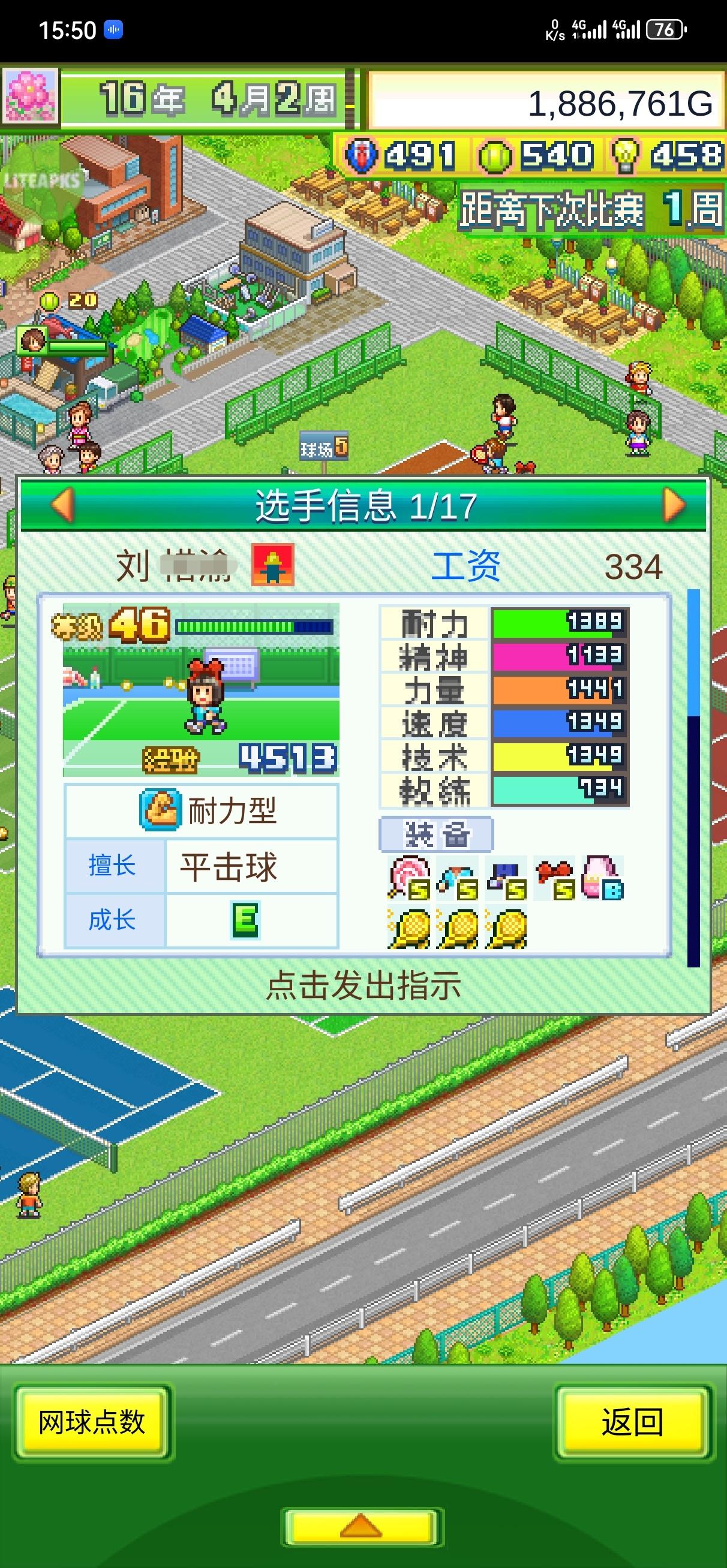 作为15年的网球爱好者&15年的开罗游戏爱好者,闲来无事第三次玩这个,用自己女儿名字创了初始角色发型也是一样的平刘海,四肢也是一样的小胳膊小腿开局选了耐力型,默认不擅长打红土拿到消耗品就吃,前期一路稳稳当当打到出双打比赛,差不多也能开启普通招募了。这时候中期,招了一个技术型小女孩和一个教练型老奶奶凑了特训的契合度提升,这俩得保证没有不擅长的场地。主力