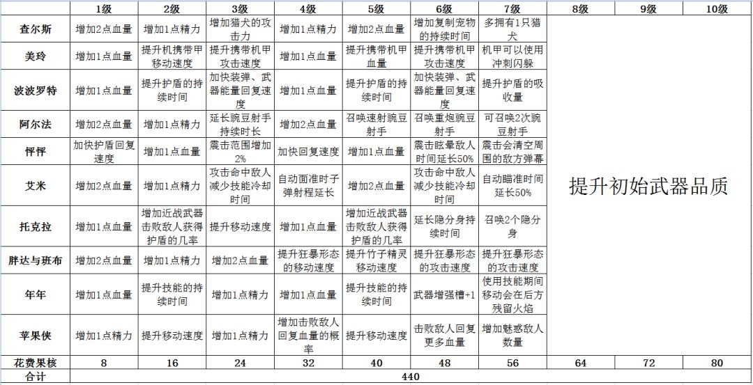 肝了这么久,终于全角色了,还全部满级了!成就也可了 所以,今天就来一份深夜攻略 所有的角色到七级就所有的天赋都升满级了,剩下的三级是提升武器的资质的,不想多花费果核的就可以只升到七级,到后期果核溢出时,再升级也不迟 美玲 机甲妹只需要来点暴击、暴击伤害、概率回血,概率加盾,攻击减少技能冷却、攻击速度就🉑了,骑上机甲暴击率还会提升,拿起几把伤害高的武器,直接突到脸上,“秘技.血条消失术”,再配上可以