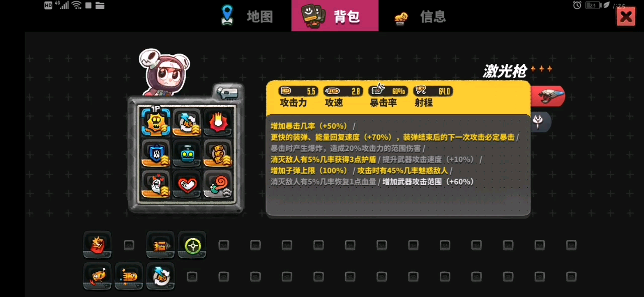 机甲真的好棒!减轻后坐力,增加射速,增加换弹速度,增加暴击率,能抗伤害快坏了还能当炸弹,变换机甲形态的时候还免疫攻击 这是暴击伤害凑的最足的一次,如果射速和换弹速度再凑齐一个金色就更好了