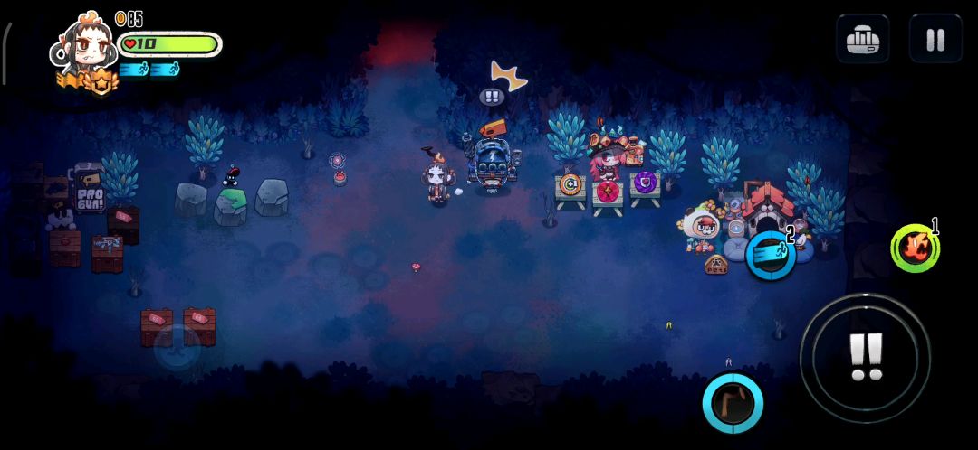 机器人只需要个减cd能力,其他随便搭配就能无伤过最困难模式,用散弹枪喷一下就一个无敌技能,站着不动叠加久了有点bug,而敌人识别不出来机器人也站着不动挨打