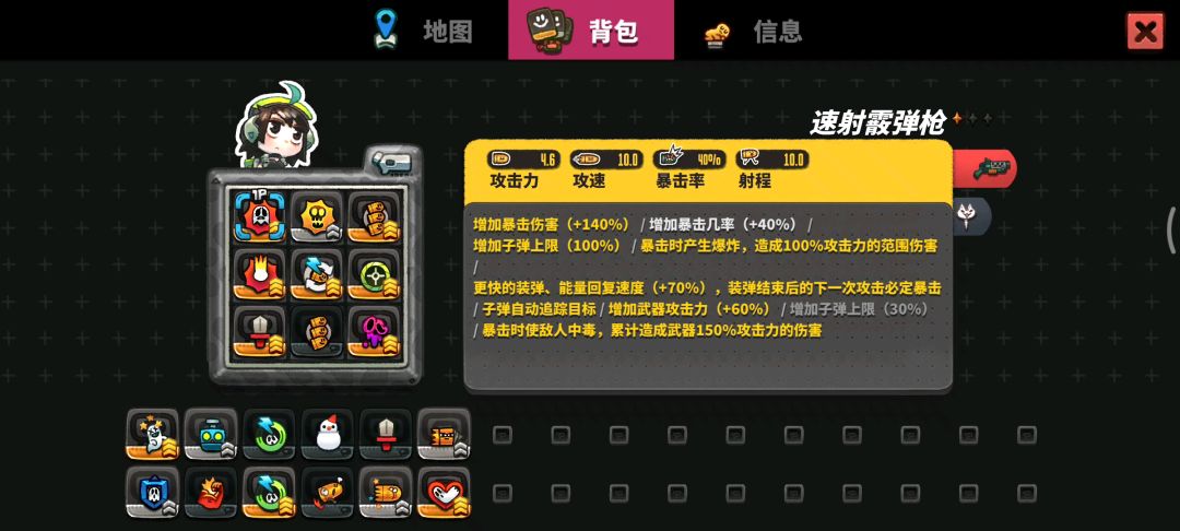 武器是折射激光枪,核心是加攻击范围,越多越好,小图两三秒就清,我愿称之为最强!