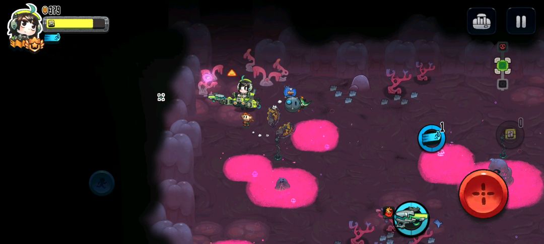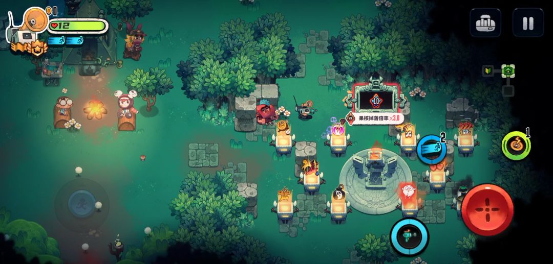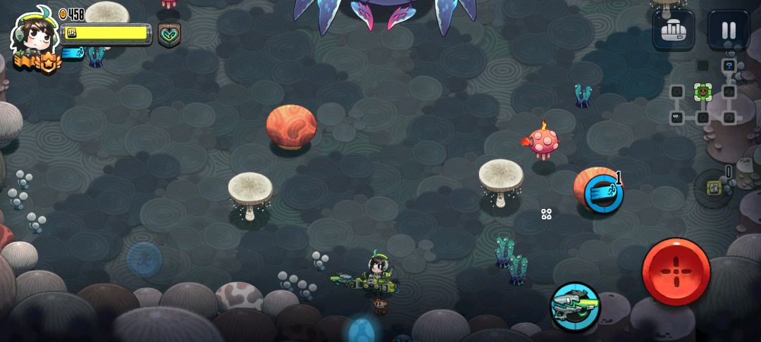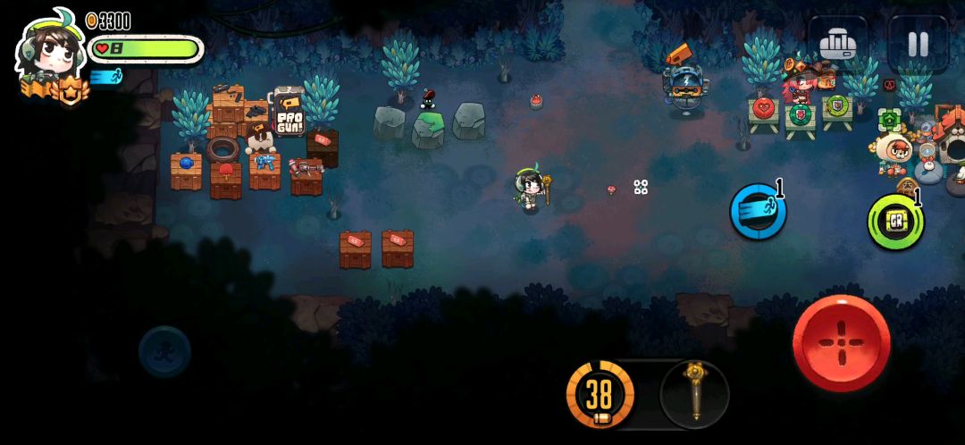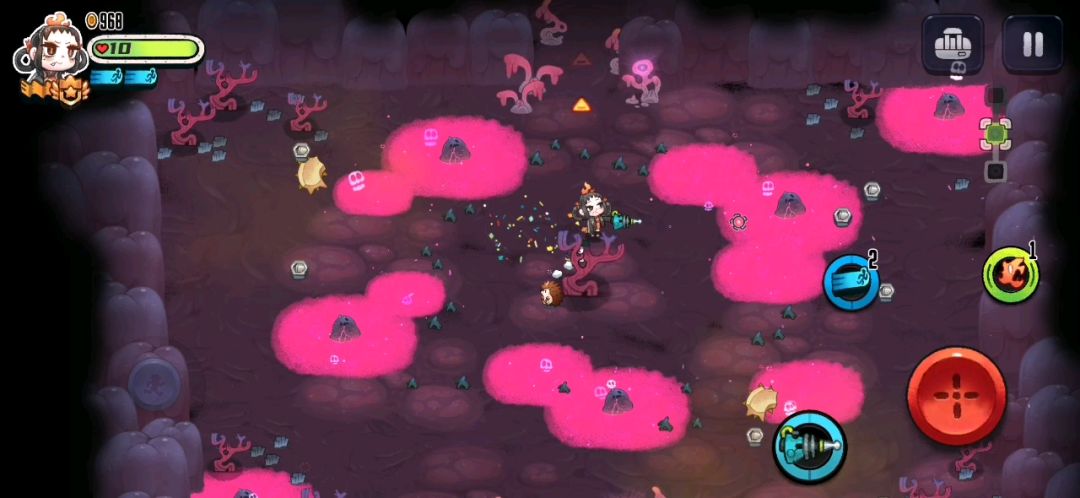 子弹自动跟踪,满级子弹增多,攻击范围增大100%,攻击力加强100%,满级子弹碰墙反弹,满级攻速,就有了如上视频,快乐。