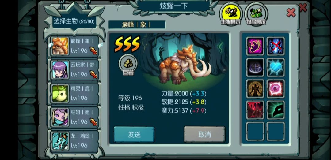 说实话有段时间没玩了信息可能会有过时,但是很多经验绝对都是值得学习的。这一层放一些我自己的生物给大家看看吧。没啥特色,附灵过的咆哮我非常非常喜欢的一只,也是我的前排。内藏杀机 比那些几十万血的还耐曹。开了无数福袋开的异形魂锁,花瓶。炸了无数传奇出的还魂祭祀,宝贝主角兜兜转转还是冲撞天价买的青龙,花瓶二号这也是千辛万苦合的,别看技能不多好用的很。别看技能多,垃圾的很懂的都懂,烧蓝必备吉祥物吧第一代控制,出奇的好用看起来很猛双高,其实双低女朋友给合的,前期最爱的东西。属性不高但是伤害很高,就是用到后期很乏力花瓶哈哈曾经全服第一可熊,曾经一箭40w