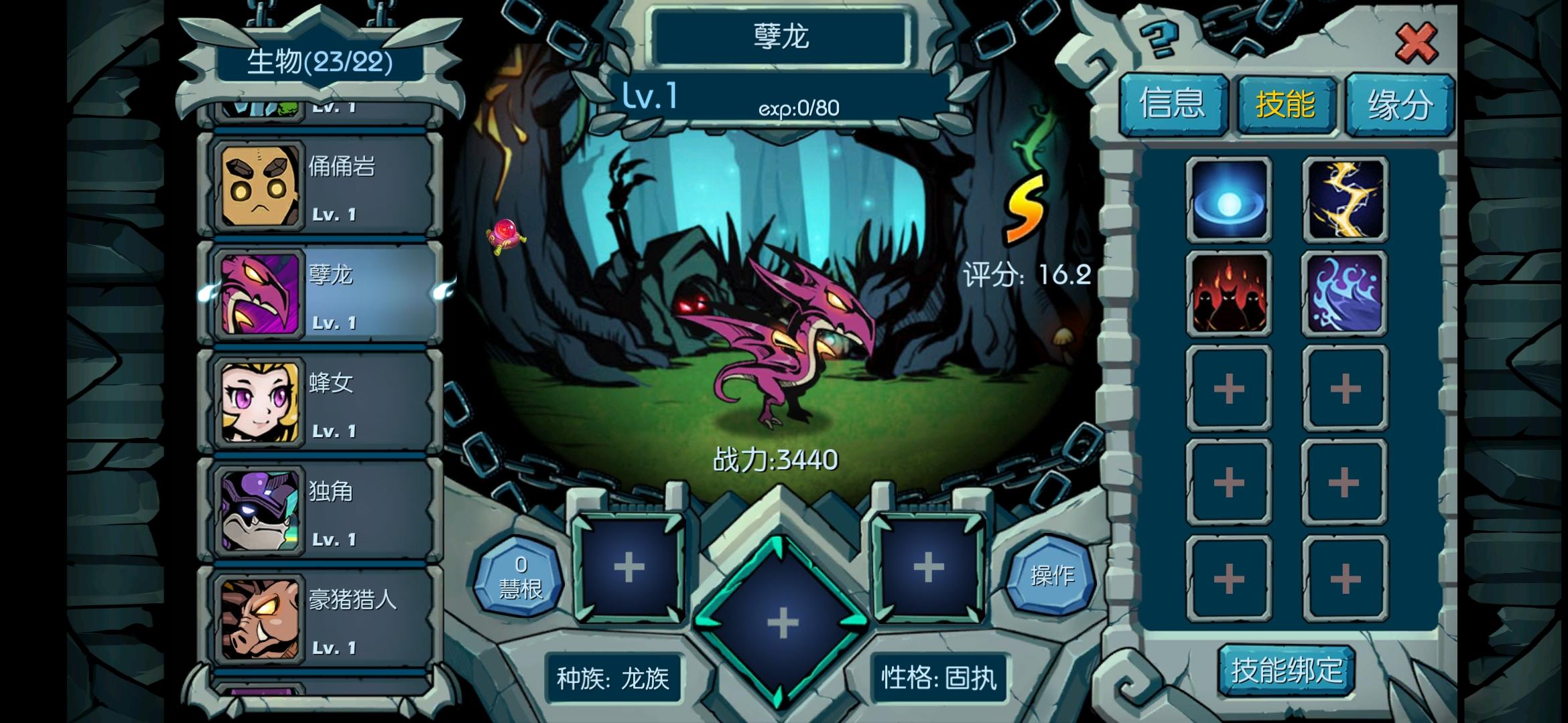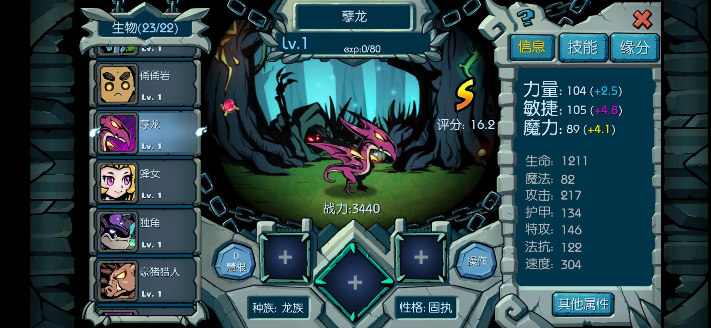 萌新前其该怎么玩呢,我推荐的阵容是1只迅猛怪玩(迅猛击)打前排,而且迅猛击吃敏捷加成,迅猛怪有个皮肤加40%敏捷,但是要先花300钻购买,还要觉醒,觉醒用10只相同的迅猛怪觉醒,也可以用百变怪觉醒,不管推图还是打架都还行,技能的话(怒吼,迅捷,追魂,暴发),我下面图那个是还没搞好的然后推荐1只迅猛怪玩(暗杀),主切后排,技能打上(追魂,迅捷,暴发,恕吼),这样的,打图和打竞技场都挺好用的,图我也