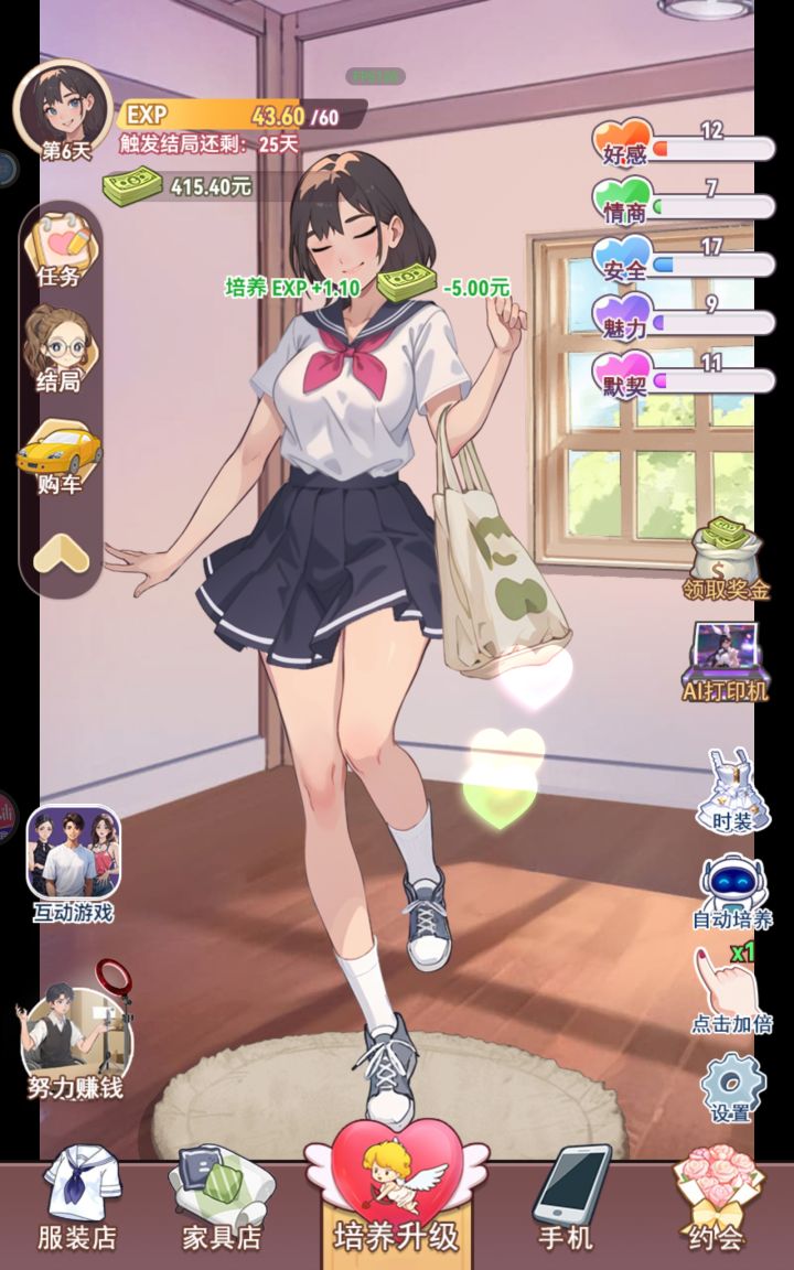创作者确实投入了一些精力在游戏上,给角色添加了Life2D,至少让玩家不是全程对着一张粗糙的AI女性图片去游玩,并且各式的时装也稍微提升了我玩下去的欲望……