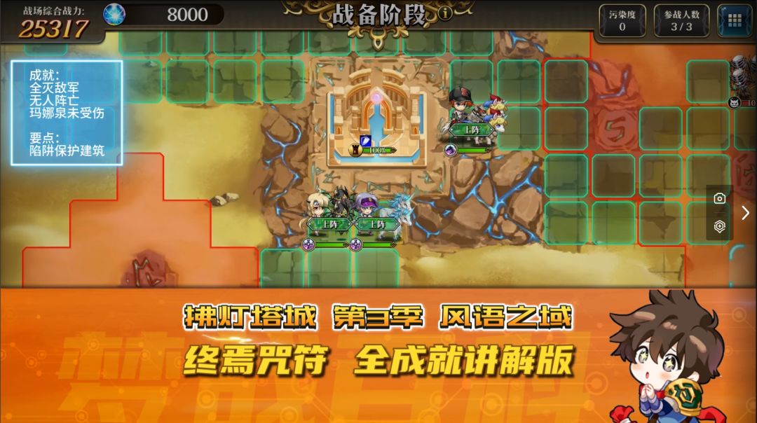 光辉的先祖“伊尔扎克王”重临大陆, 与其他光辉的导师给我们带来了 “光辉的教导” 阻止他们的进攻, 完成试炼, 向他们证明: 无论在怎样的时代, 光辉的力量依然强大! 本期为大家带来“协力战-光辉的教导”攻略。 本攻略适用于Lv.23/Lv.28/Lv.33的关卡。 更高难度的关卡中怪物设定不同,并不适用本篇攻略哦! 地图信息 关卡信息 敌方会从图中3个位置进攻城堡。 敌军会向绿色方块位置移动, 并