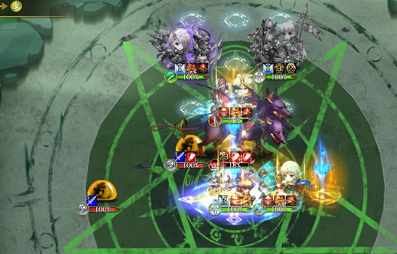 万兽迷径新活动1-1前瞻关卡: 1.出击(出击的英雄要值班一场,下次战斗不能使用) 2.黑猫往上走气刃秒掉小骷髅 3.冰龙往上走用天罚 4.冰龙用锁链把左面小兵拉过来,用3c打到两个小兵 5.黑猫秒掉小兵,胜利