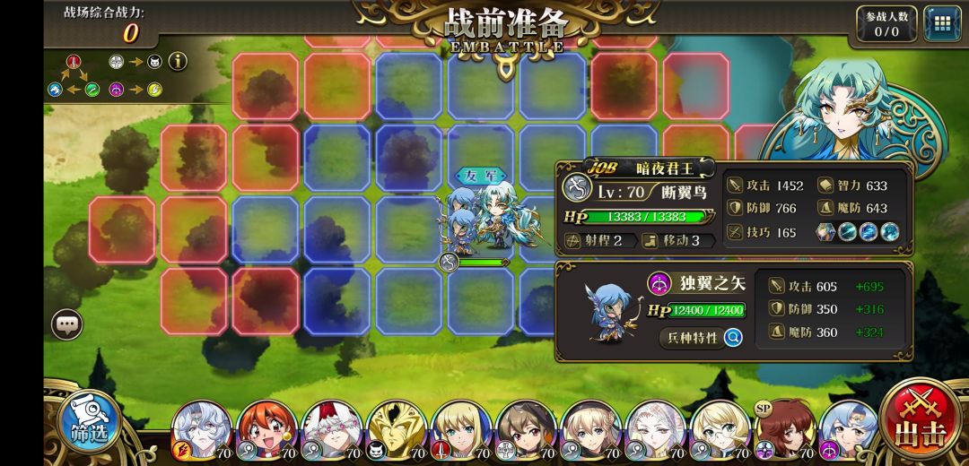 断翼鸟新角色前瞻关卡双成就: 1.出击 2.走到左上树上往上放风灵之瞳,之后往左走两格待机 3.第二回合开始走到危险范围边上用3c秒掉法师,原地待机 4.用2技能秒掉最下面剑兵,原地待机 5.用3c秒掉剑兵,往下走一格待机 6.往上走到两个僧兵下面贴脸放风灵之瞳,之后往左面站树待机,回合结束后胜利