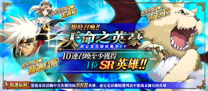 SSR英雄阿雷斯、梅雅、诺埃米概率UP&艾尔文SP道具限时获取!