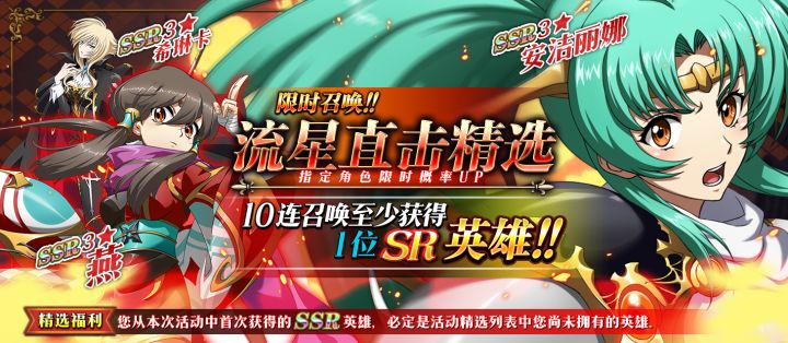 心怀爱与大义必能重塑光耀未来,帝国精选卡池降临;全新礼包上架商城,伴您热血战斗。指挥官们,准备好接受挑战了吗?限时召唤-帝国之辉精选征服的车轮滚动不歇,碾过不及追忆的往日阴霾……心怀爱与大义之人,必将重塑万众期许的光耀未来!活动时间 5月20日10:00-6月2日23:59限时召唤「帝国之辉精选」中SSR级英雄弗洛朗蒂娅、海伦娜、贝蒂出现概率提升!精选福利:你从本次活动中首次抽取到的SSR