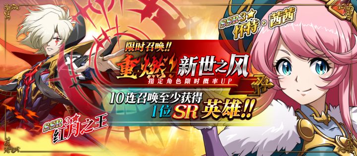 全新资料片“重燃!新世之风”重磅来袭——异星复仇者红月之王、少女财阀长怀特·茜茜华丽登场;主线剧情更新,英雄们与邪恶的争斗仍在继续;新春庆典第一弹即将开启,秘境限时活动来袭……一段全新的冒险即将到来,指挥官们,准备好接受挑战了吗?【更新内容】【新限时召唤-重燃!新世之风】活动时间:2月4日10:00-2月17日23:59终章追忆,红月之主如约而降,奇妙相遇,商贾少女应邀而来……重燃吧,激昂时