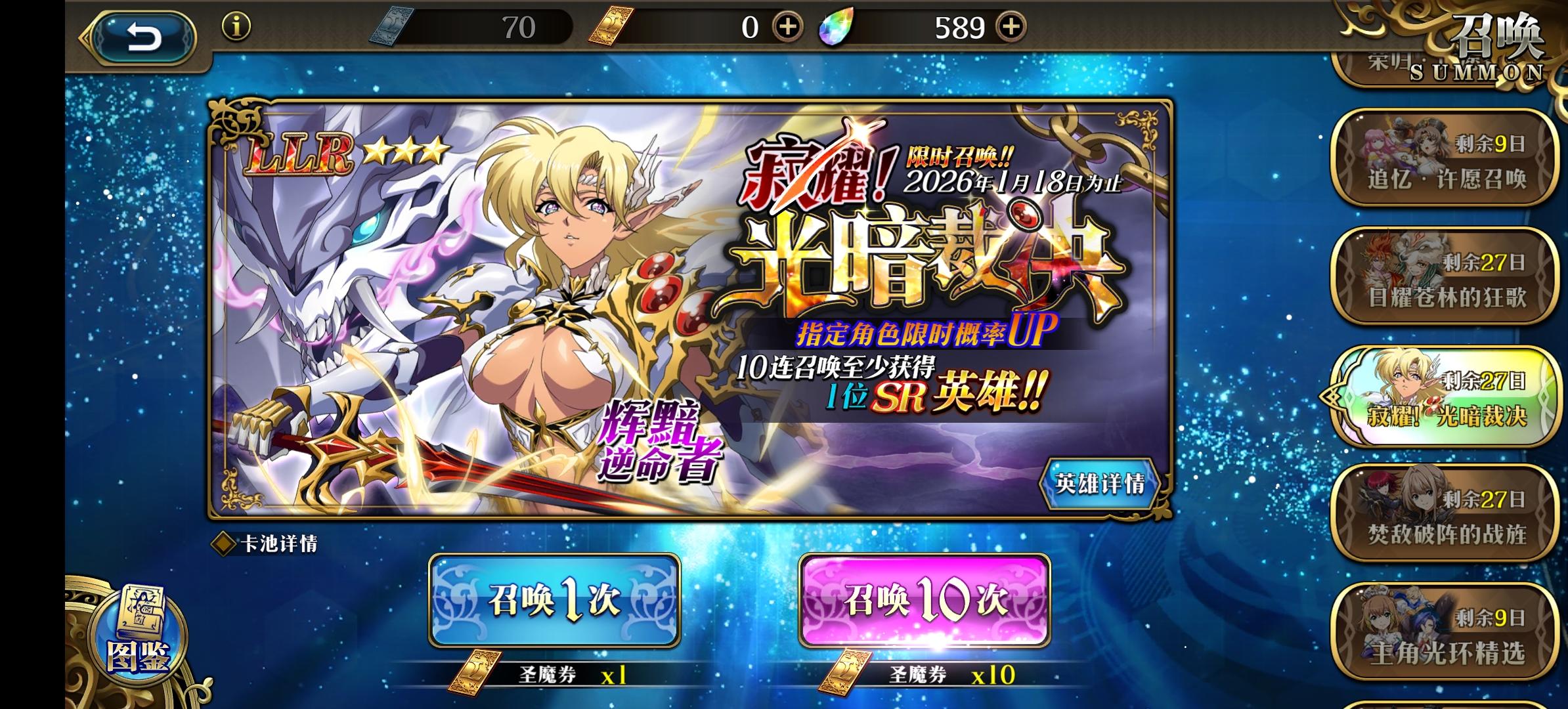 大概350抽,出了1露娜1里奇2莉拉。看来注定是与莱莎琳无缘了,攒票迎新年吧。