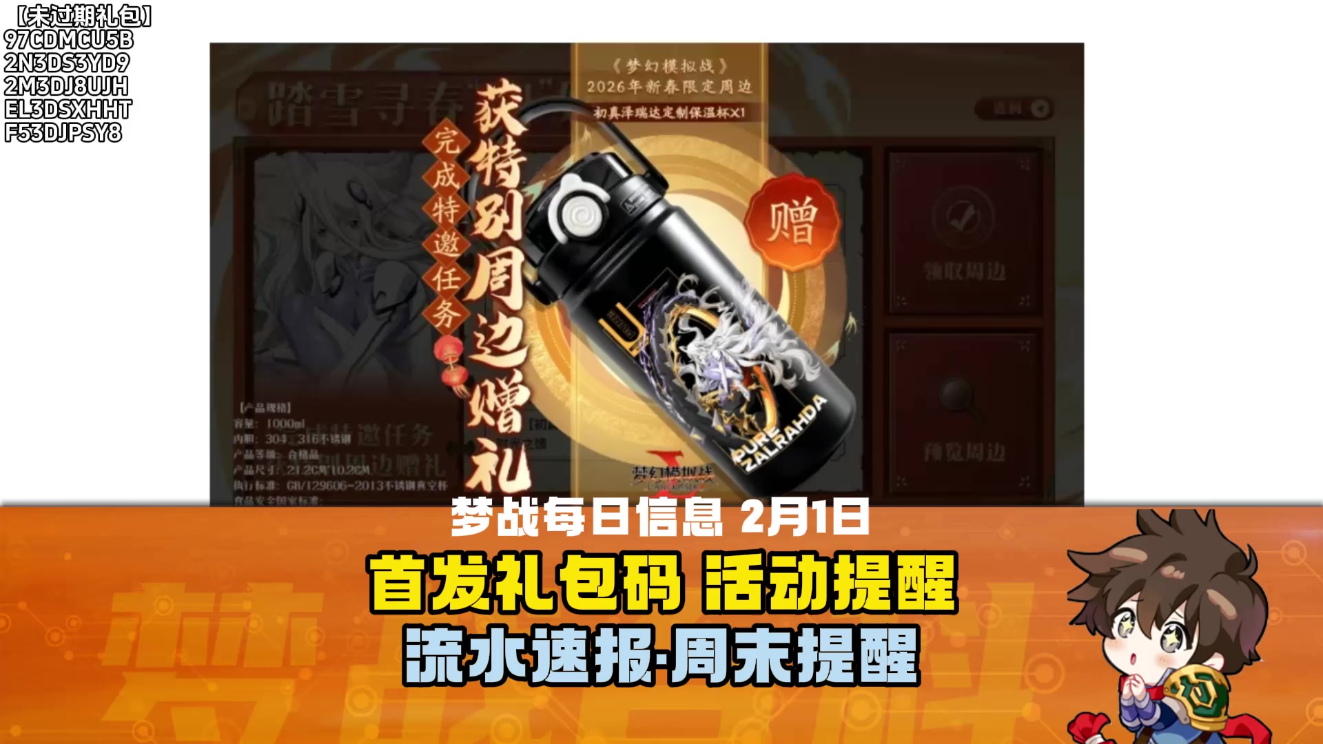 【每日梦战】2月1日 流水速报 周末提醒 首发礼包码 活动提醒