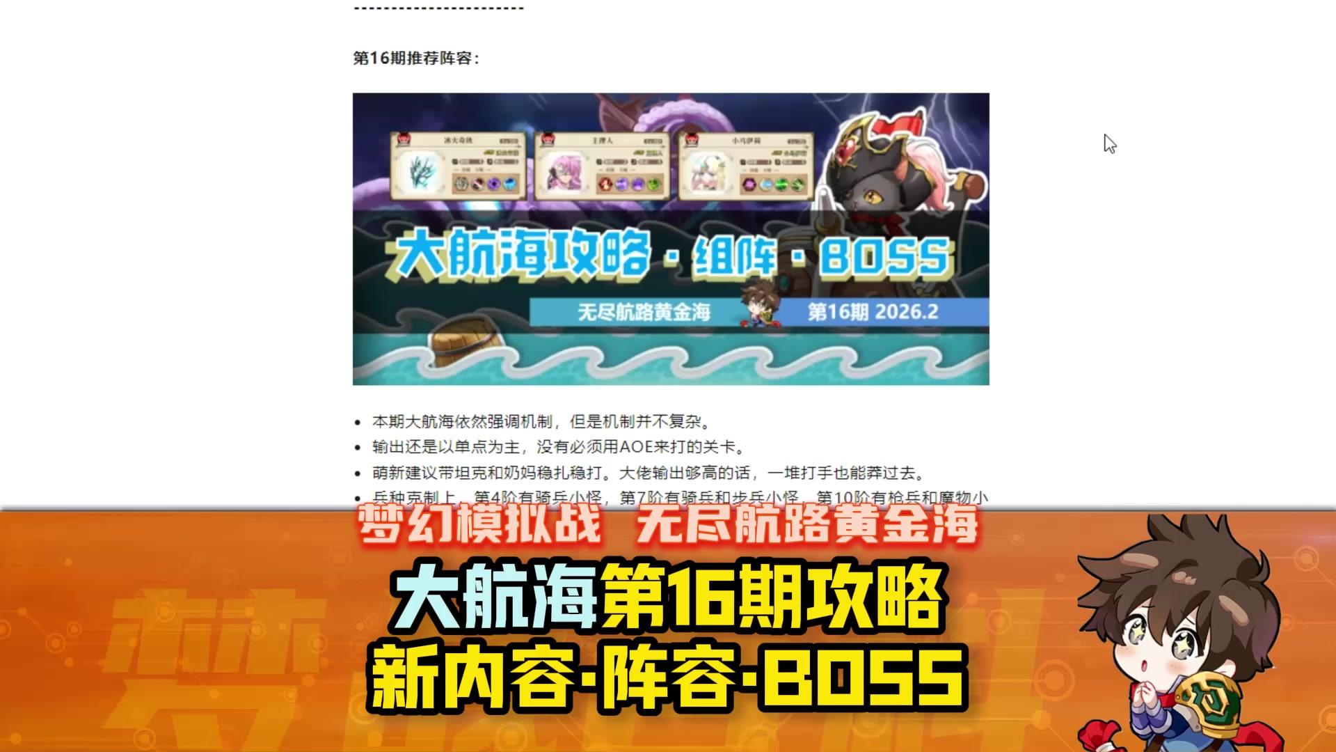 【大航海】第16期 新内容 推荐阵容 BOSS打法 无尽航路黄金海