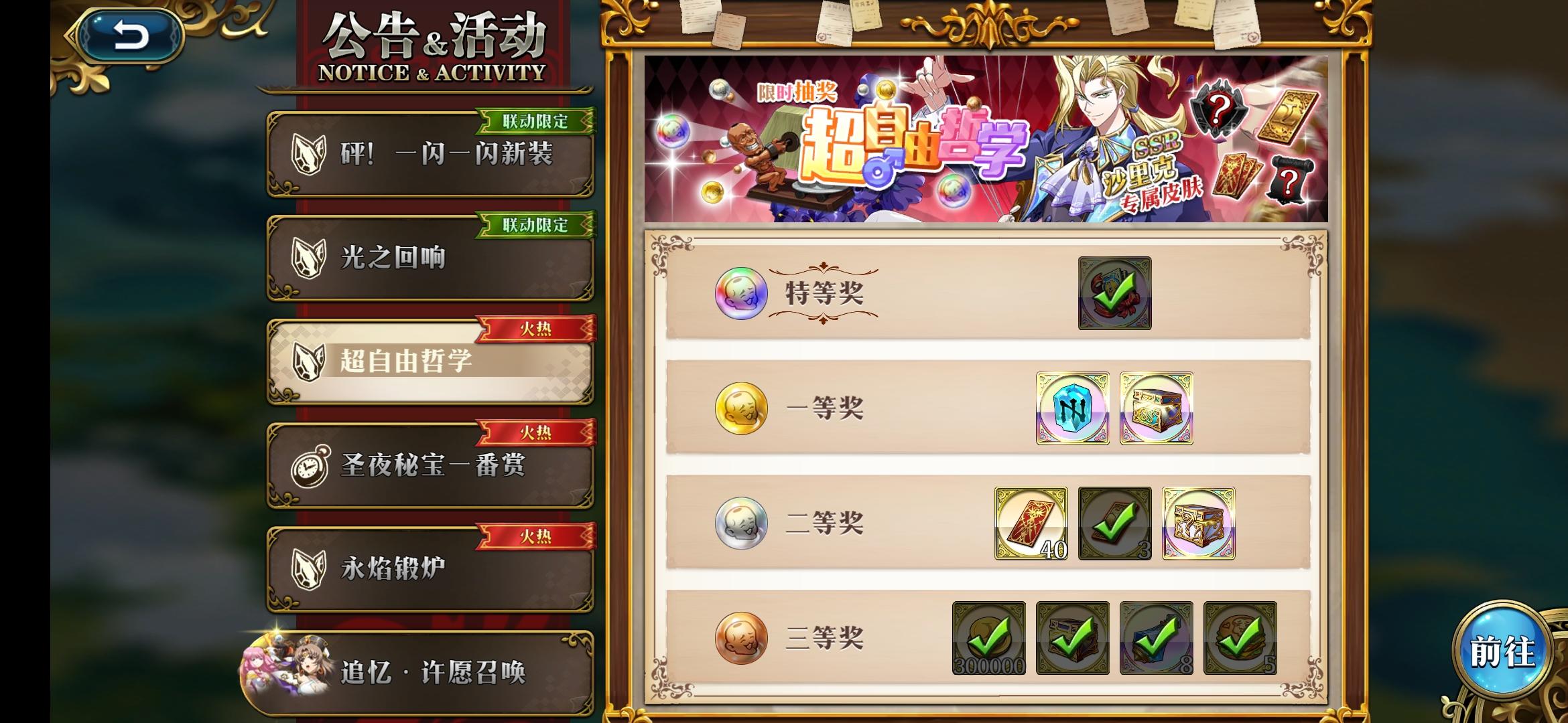 大概350抽,出了1露娜1里奇2莉拉。看来注定是与莱莎琳无缘了,攒票迎新年吧。