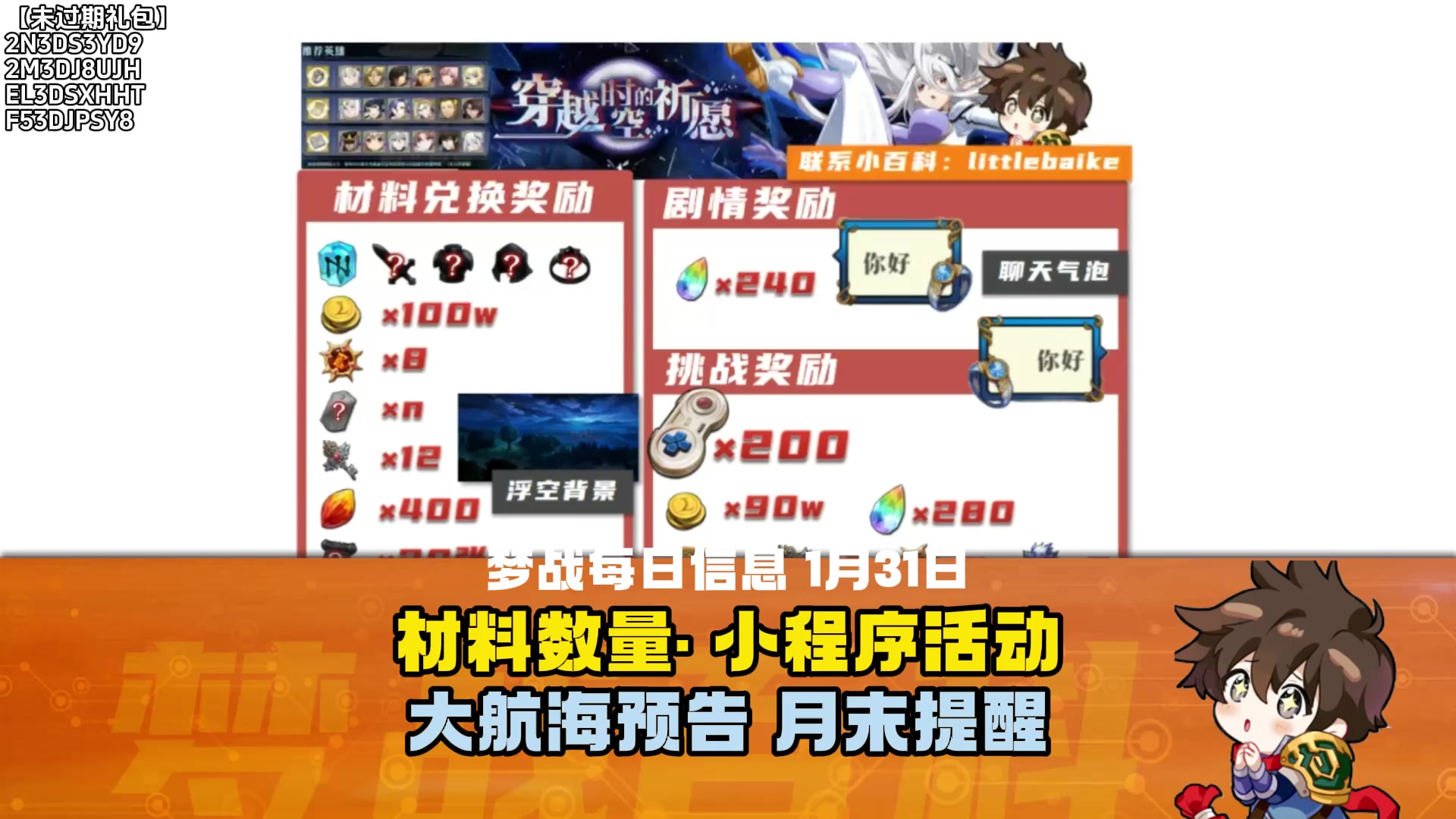 【每日梦战】1月31日 材料数量统计 小程序活动 大航海预告 月末