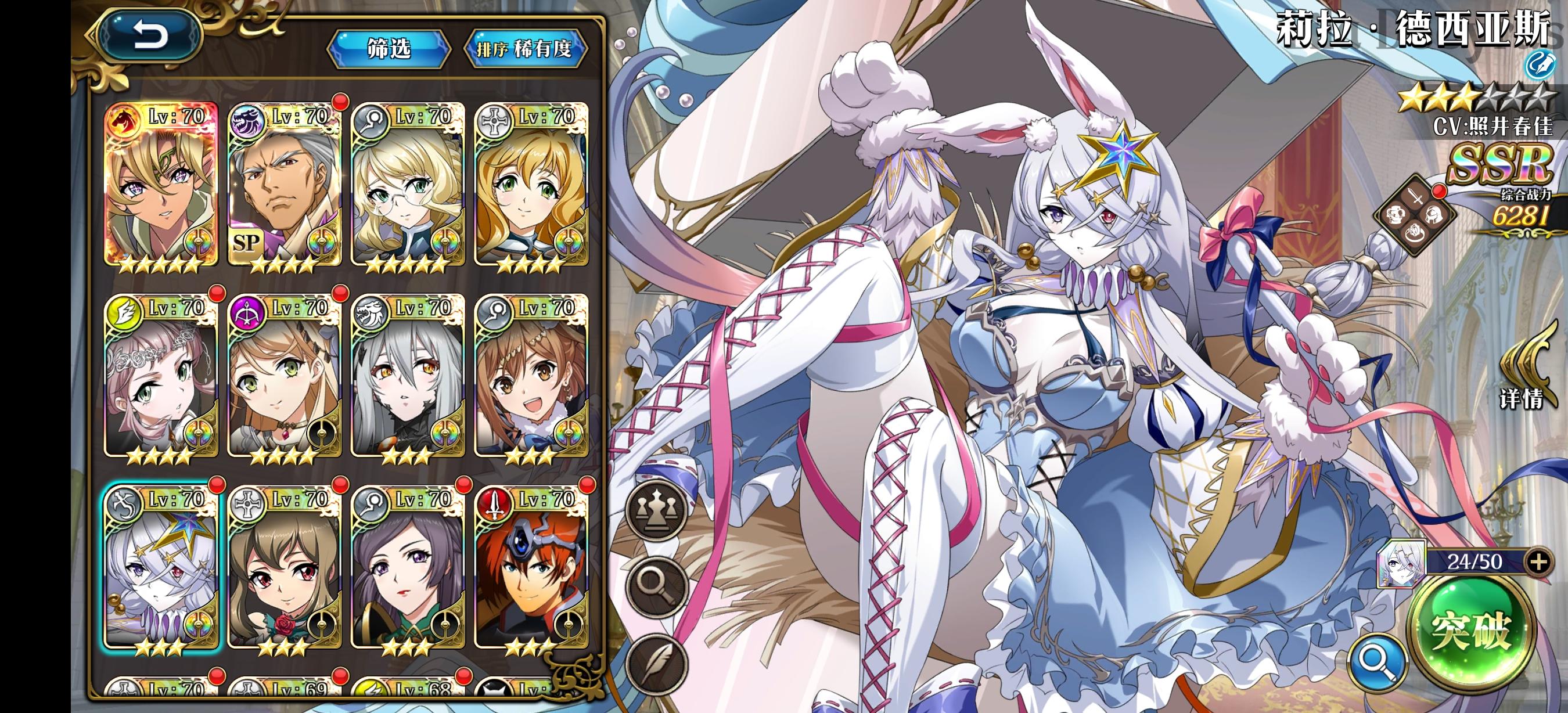 大概350抽,出了1露娜1里奇2莉拉。看来注定是与莱莎琳无缘了,攒票迎新年吧。