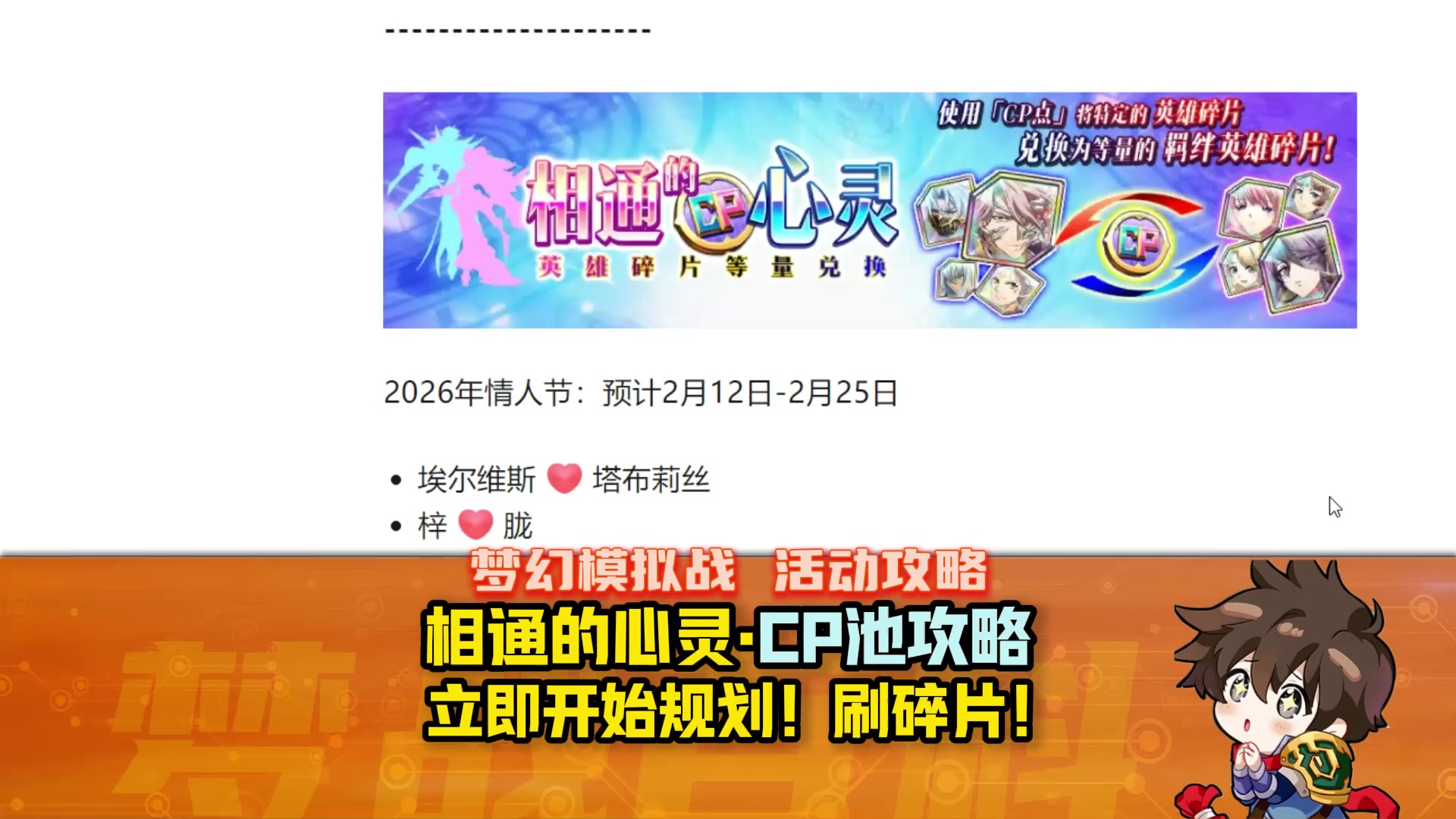 【相通的心灵】情人节CP池攻略2026版 立即开始刷碎片!