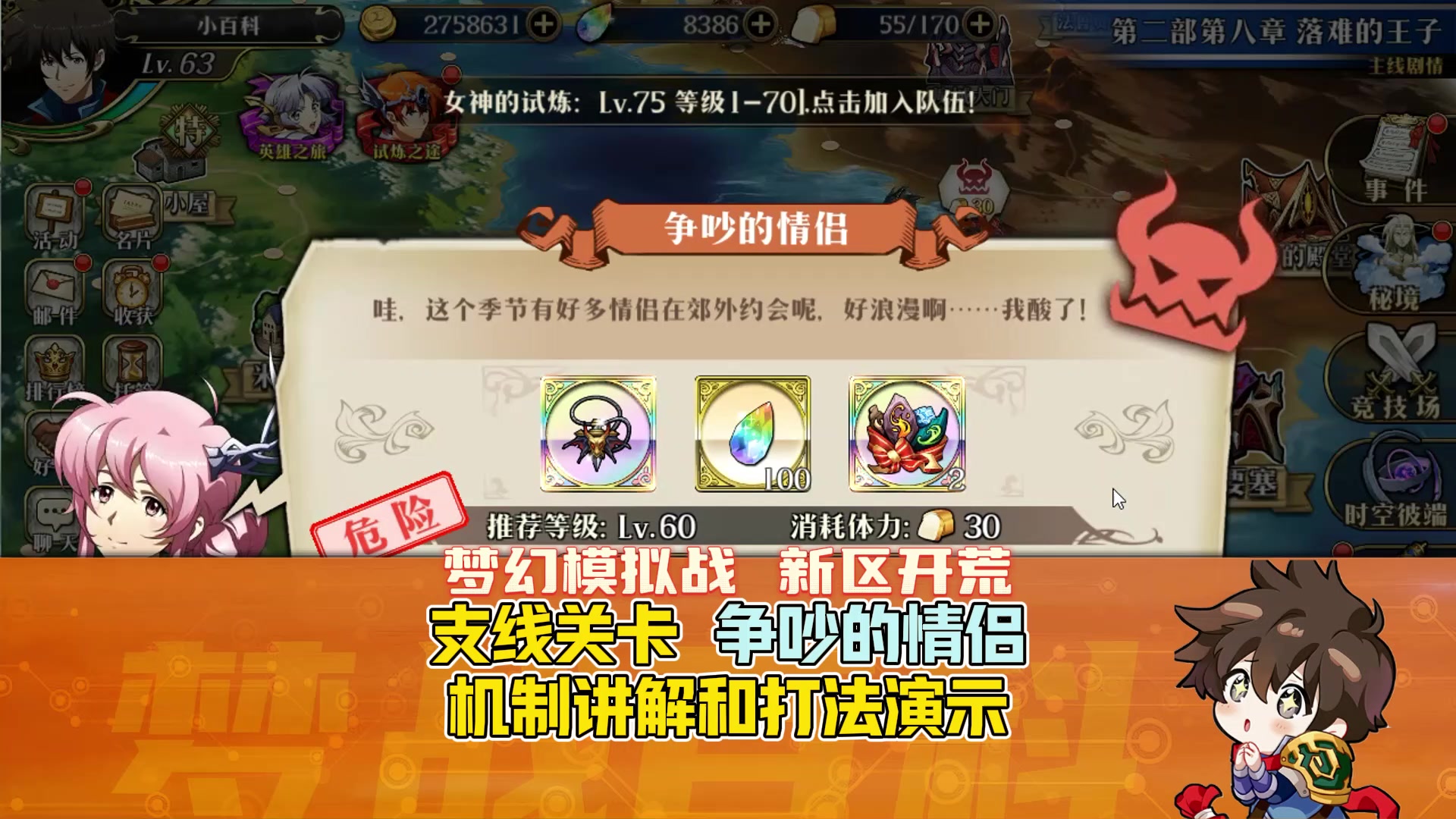 【新区开荒】支线关卡 争吵的情侣 打法讲解 大地图30体力事件