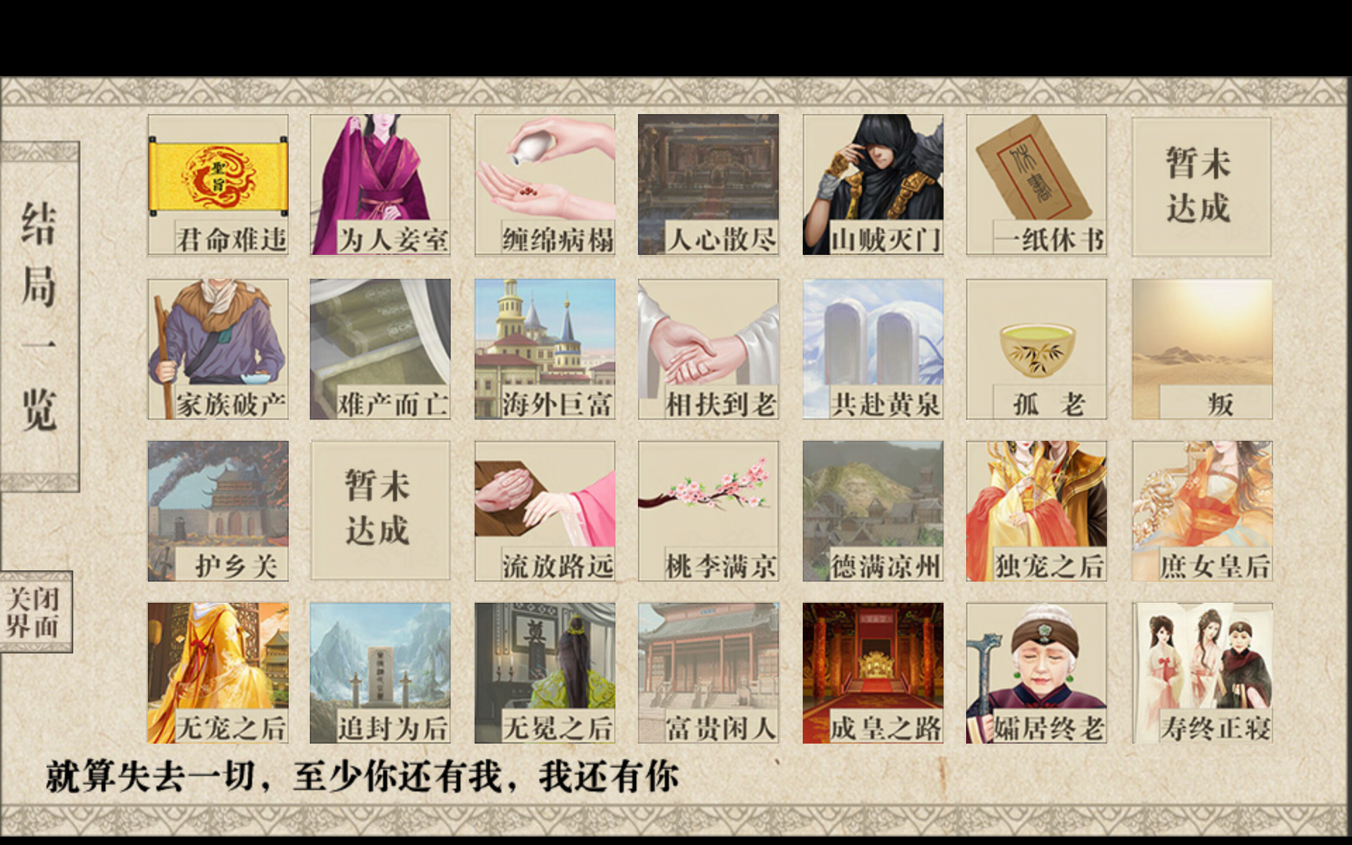 1.陶湛线路 A 人脉1500以上 B 婚后第24年资助三皇子500w(可以府库私库合计) 婚后第30年结局。 AB都符合进入结局海外巨富 AB仅符合一项,根据最终选择不同进入结局相扶到老 / 共赴黄泉 AB均不符合进入结局孤老 2.宣千山线路(婚后第10年离家,第15年归来后赋闲) A 声望9000以上 B 婚后第23年允许墨离参军 婚后第29年结局。 AB都符合进入HE结局护乡关 AB仅符合