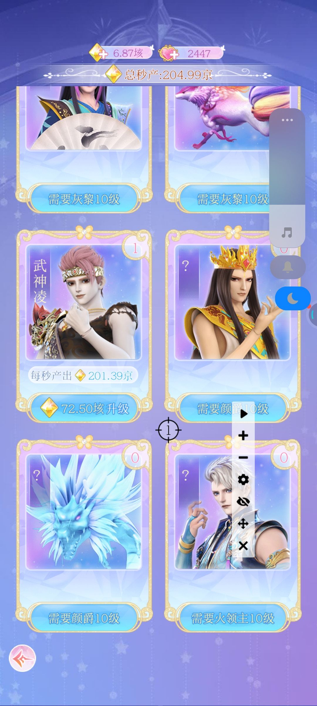 单机游戏,可以改手机日期,改了之后签到和奖励就会刷新,先改日期签到把武神淩领了,每秒可以生产201京金币,然后再把前面的伙伴都解锁了,只要十几分钟金币就到垓了[表情_草][表情_草] 第二个是小屋的隐藏服装,除了这些剩下的隐藏服装要灵犀阁获取,但是没有灵犀阁[表情_草][表情_草] 小屋有bug,宝石巢显示把王默拖动到更衣室,实际上还要把罗丽拖到滑板🛹上,然后再把令牌放到婴儿车里就完成了。有时候还