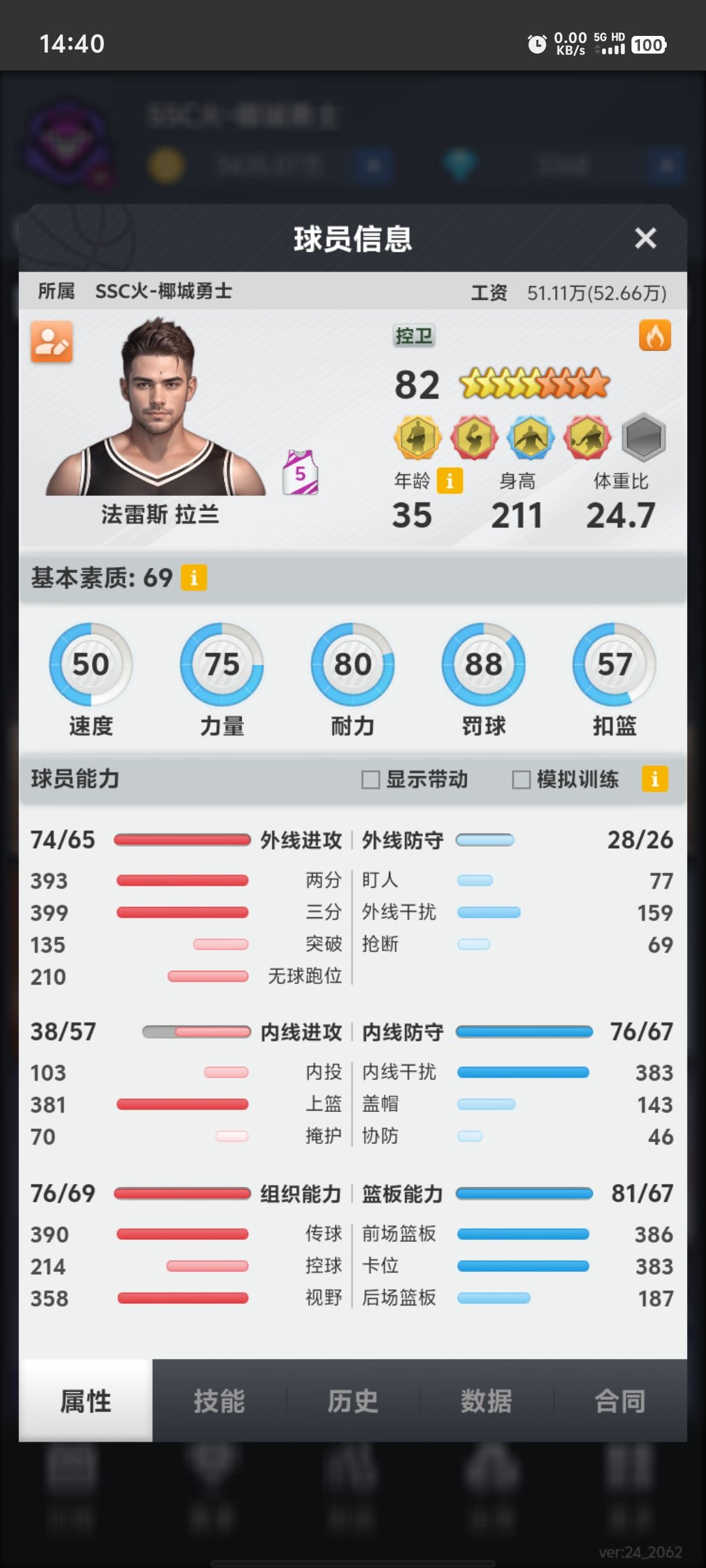 关于111赛季的故事 杯赛里小队再次在前五轮输给了高评分的大佬。 联赛倒数第二场输给了我的决赛对手,失去了亚历克斯的队伍在外防线上难以束缚对方的后卫,小韩与强子的成长之路仍然漫漫,小前锋莫兹布尔的外线防守还没有得到加强。这场失败留下了弥补不了的遗憾,怀意哥失去了常规赛mvp。比赛结束,我去交易市场上找来了31岁的老谭,他参加过更高级别的联赛,勇于出手而又能够提供满足联赛需求的防守,他在决赛里也交出
