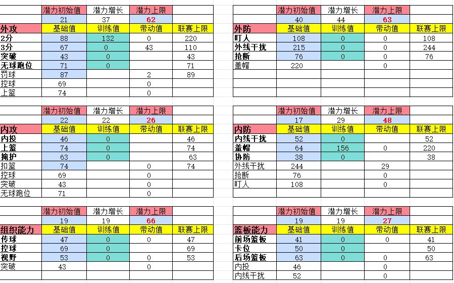 新手礼包的21天支持者到期了,只拿首充和对照着官方模拟都能卡周训出错的我,只能连夜赶制了球员模拟训练表格,虽然没能精准到零点几,但误差1.5以内应该没问题,潜力兑现通过论坛找到的资源和我通过球员模拟数值计算出的略有出入,我按照球员模拟同数值输入了一遍,误差值±1,虽然单项计算器也能敲,但是做出表格来球员整体一目了然而且一劳永逸,就是球员评分还不知道怎么弄 提取码: LQJL#攻略