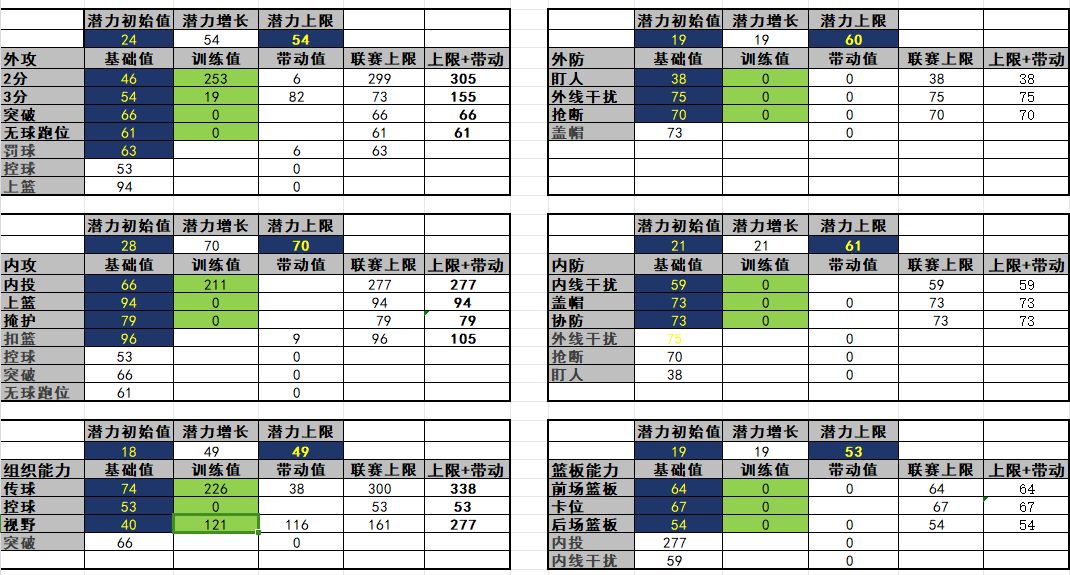 首先感谢 Block和立稳 两位大佬提供的数据参考 因为表格内需要对应的数值填写,电脑端使用会比较方便,购买支持者的可自动忽略,因大更后带动不占潜力,这个表格的作用也是作为一个懒人专用了,因为我大号购买支持者,另有两个小号需要使用,所以更新了一下,作为卡极限周训强迫症的我,喜欢把需要练的每一项都卡上周训,需要时刻盯着日训数值,有点累 先上图 表格中白色框内已输入公式,不要进行编辑或输入数值,蓝色区