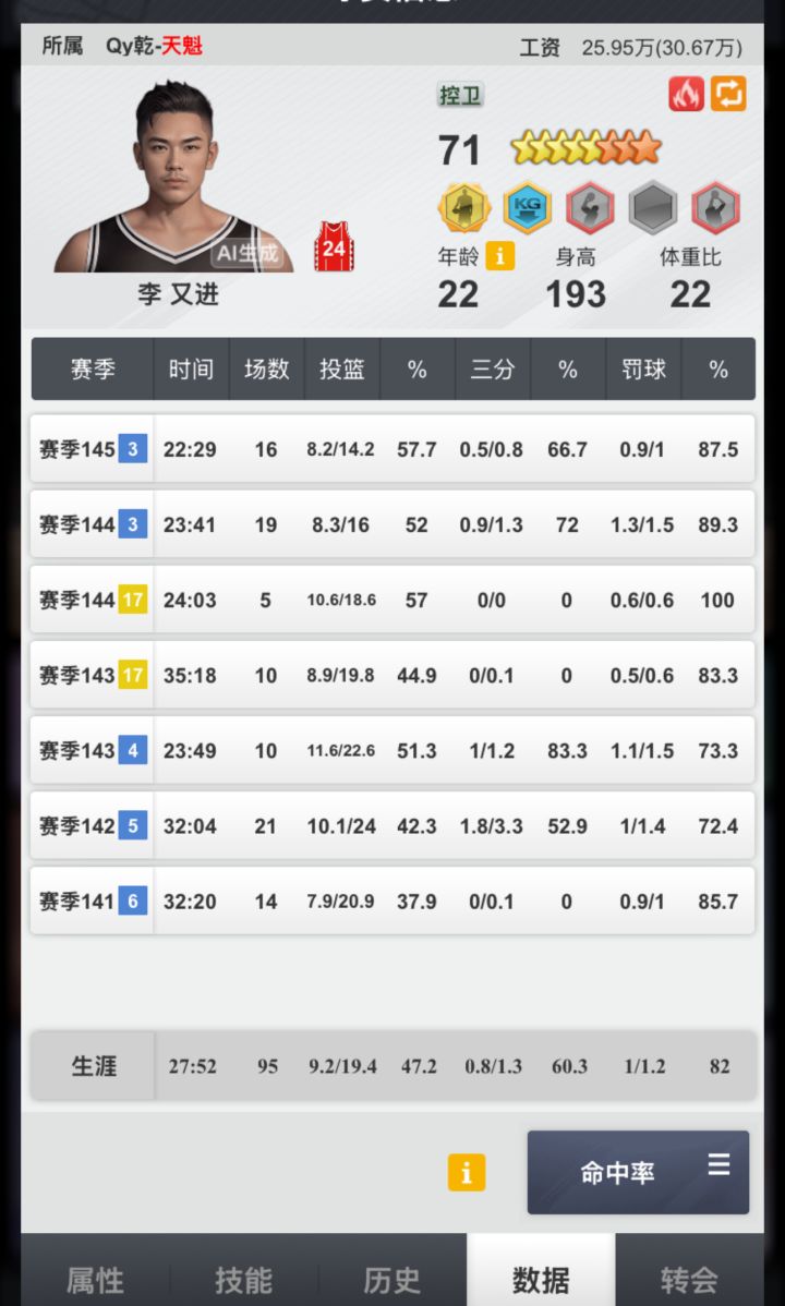 单发出奇迹,篮板80+内防70+中锋,要的评论